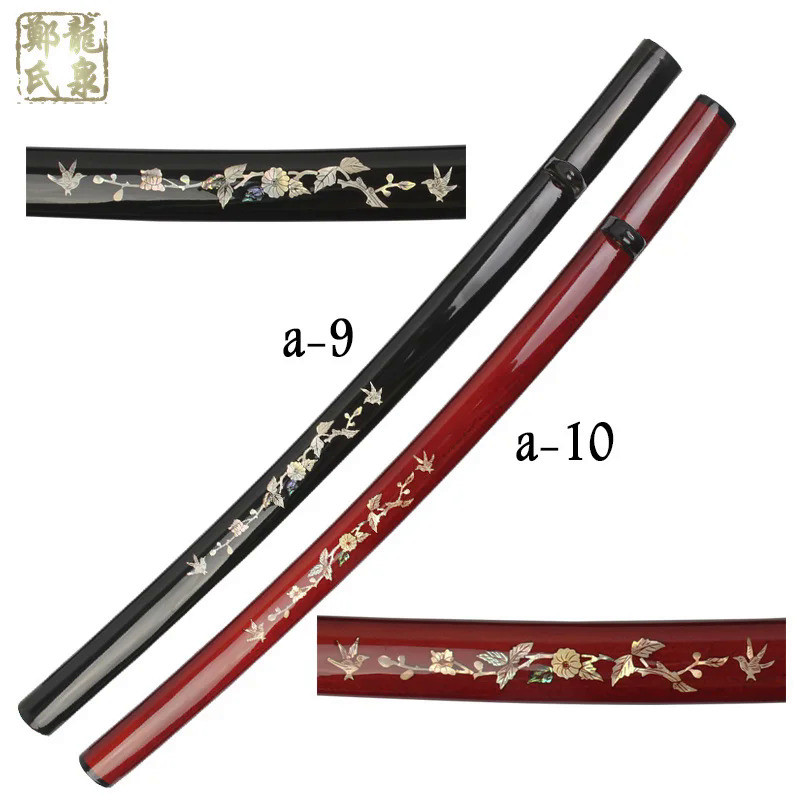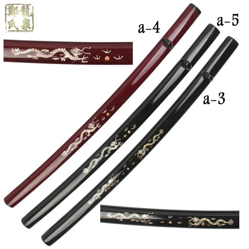 Japanese Sword Saya, Wooden Material Inlaid Real Shells,Katana Scabbard, Sheath, Dragon Pattern,76CM Length,Black, Red