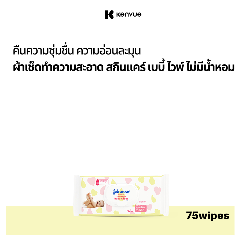 Johnson's Baby จอห์นสัน สกินแคร์ เบบี้ ไวพ์ อัลตร้า เซนซิทีฟ สูตรไม่มีน้ำหอม 75 แผ่น J&J