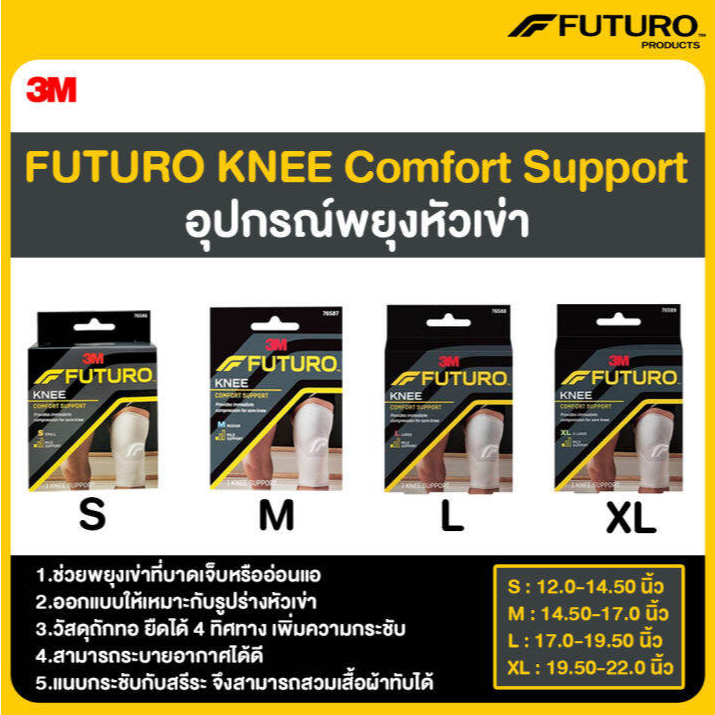 Futuro Comfort Knee Support ฟูทูโร่ อุปกรณ์พยุงหัวเข่า ช่วยพยุงข้อเข่า และบรรเทาอาการปวด SIZE L (17.0-19.5 นิ้ว)