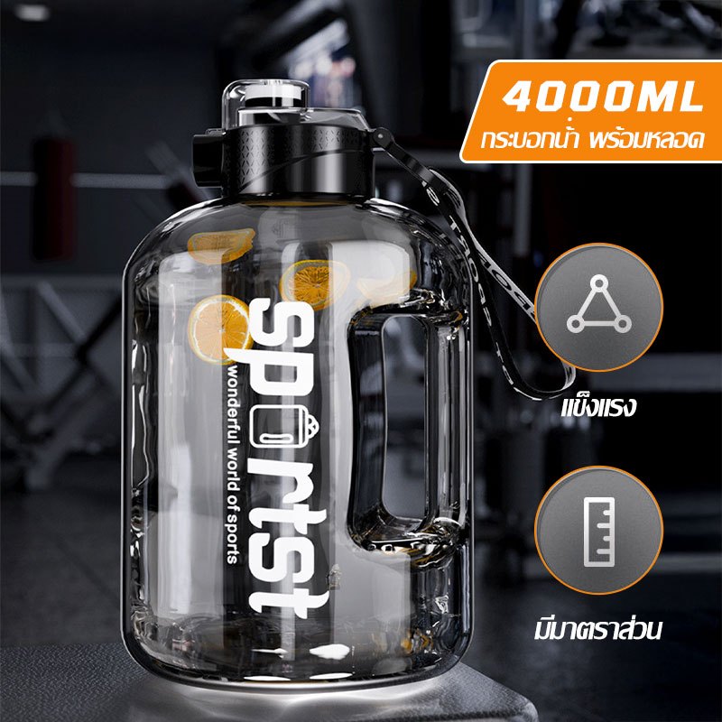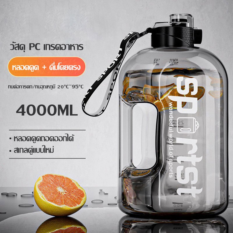 ขวดน้ําดื่ม พร้อมหลอดดูด ขนาดใหญ่4Lกันรั่วซึม จุน้ําได้เยอะ สําหรับแคมป์ปิ้งกีฬากลางแจ้ง สําหรับยิม ปลอดBPA ทนความร้อนสู