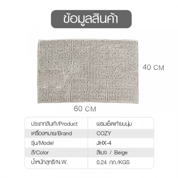 GlobalHouse COZY พรมเช็ดเท้าขนนุ่ม MEKA01 40×60×1.1ซม. สีเบจ สินค้าของแท้คุณภาพดี