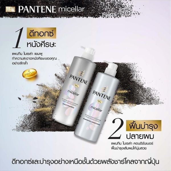 Pantene แพนทีนไมเซล่า ชาร์โคล แชมพู 530 มล. Pantene Micellar Detox & Scalp Cleanse Shampoo 530 ml