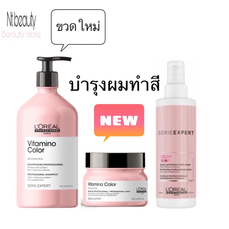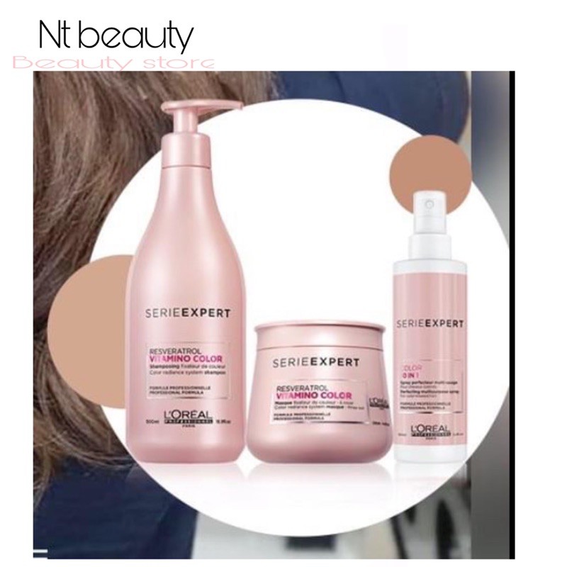 3 ชิ้น Loreal Vitamino Color Shampoo 500ml + Vitamino Color masque 250 ml + 10 in 1 spray แชมพูและมาส์กปกป้องผมทำสี