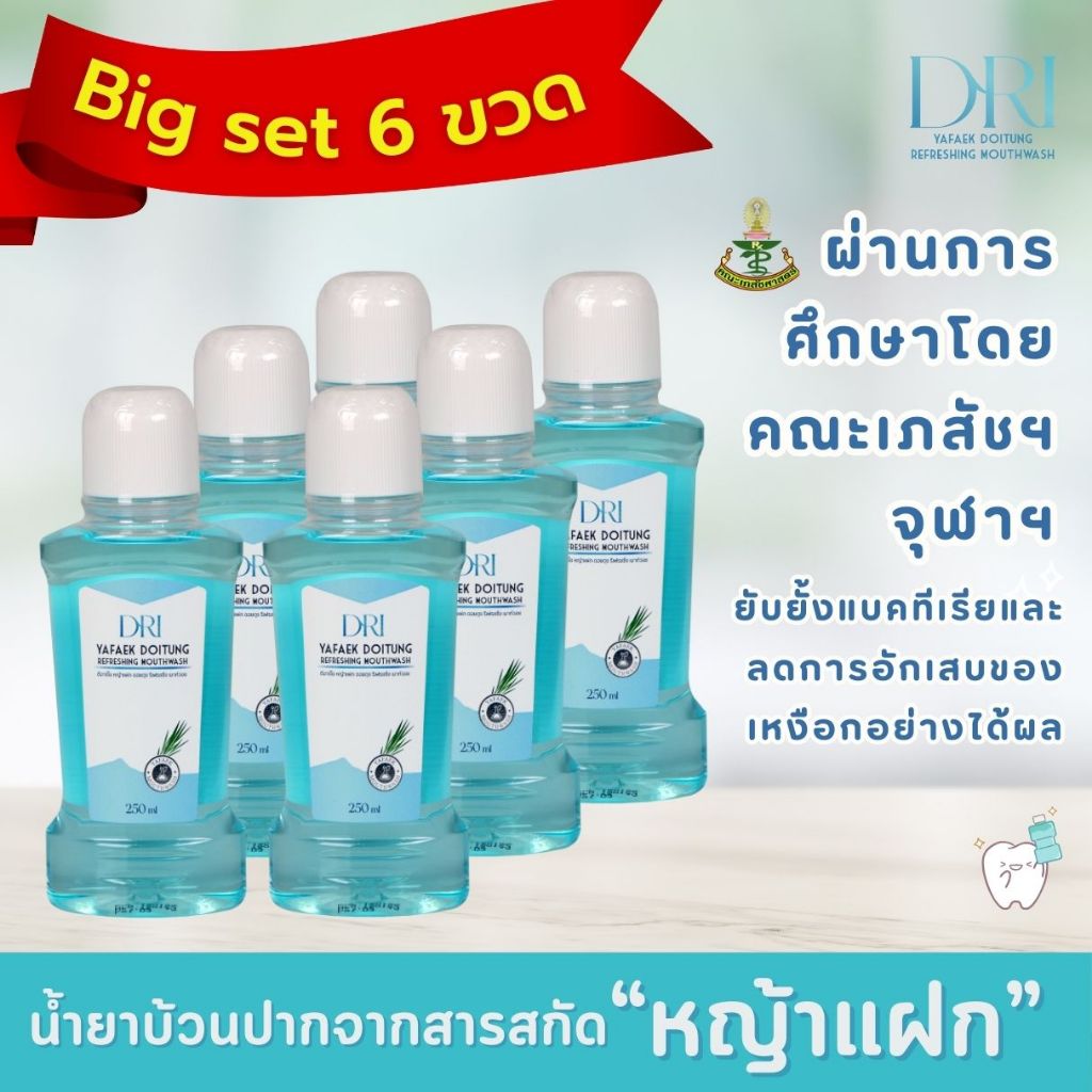 แพ็ค 6 น้ำยาบ้วนปากหญ้าแฝก ดอยตุง DRI Yafek Doitung Refreshing Mouthwash I สูตรธรรมชาติ I ไม่แสบปาก I จัดการกลิ่นปาก