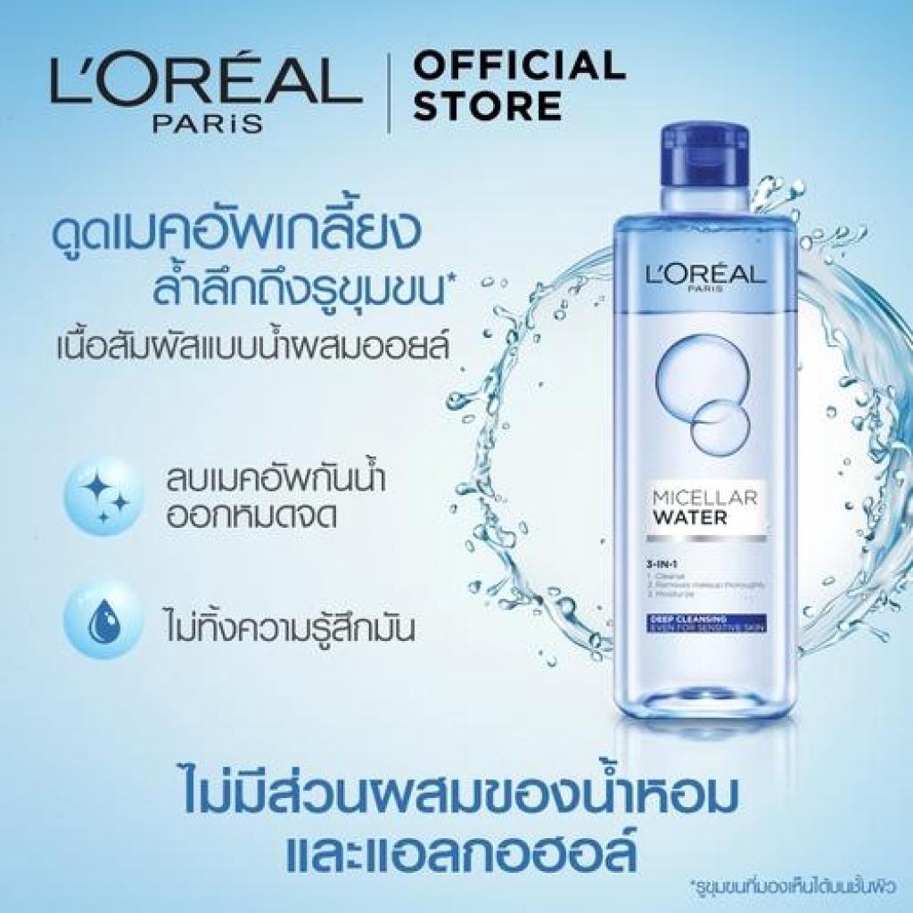ลอรีอัล ไมเซลล่า วอเตอร์ ทรีอินวัน เมคอัพ รีมูฟเวอร์ 400 มิลลิลิตร (Deep Cleansing สีฟ้า)