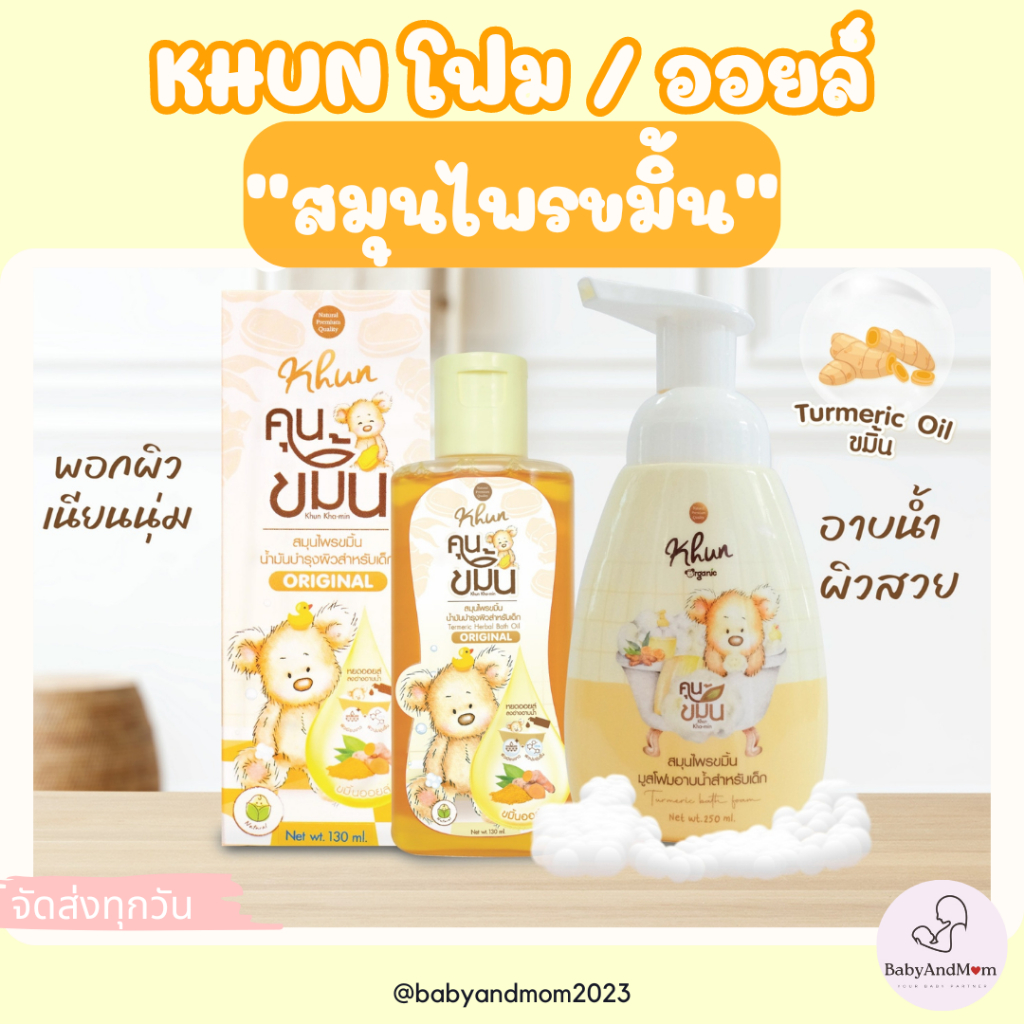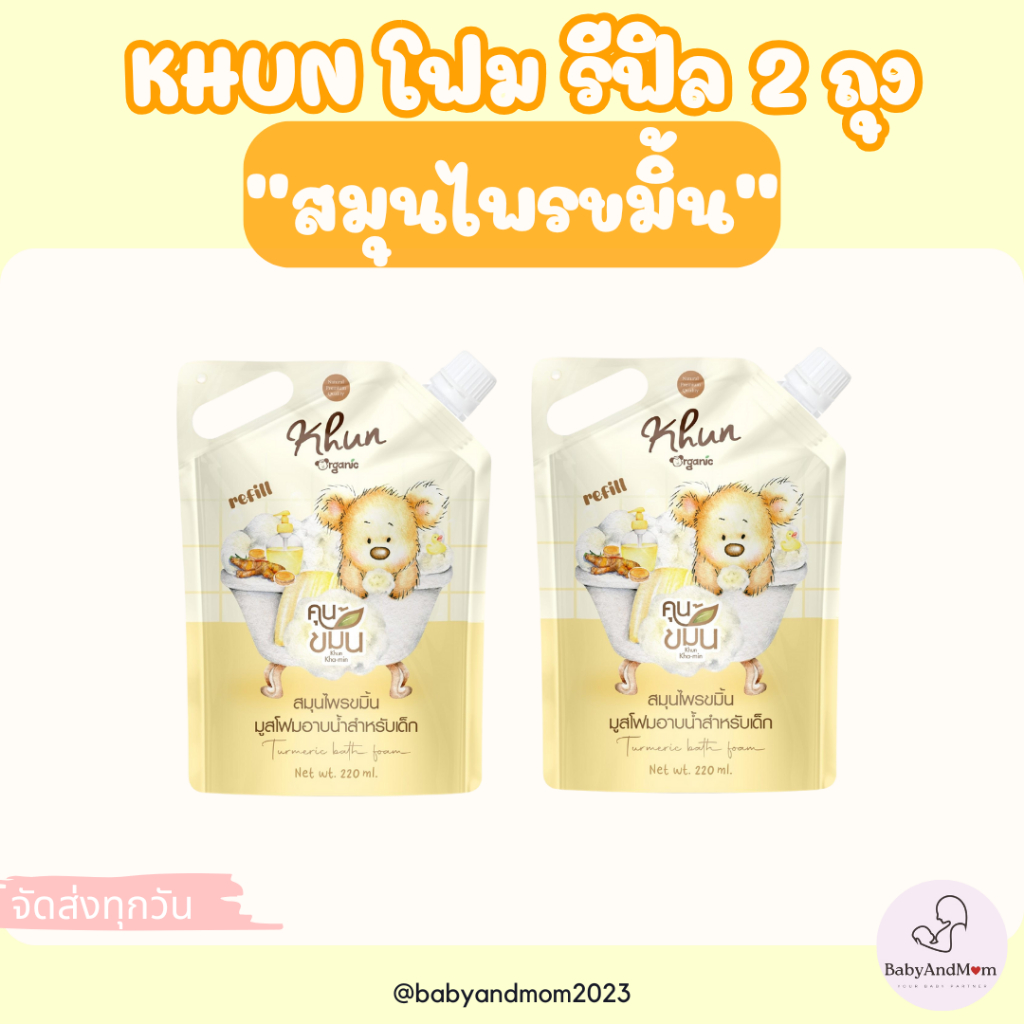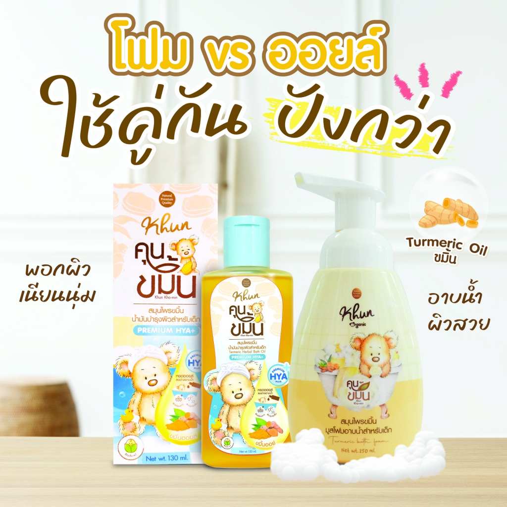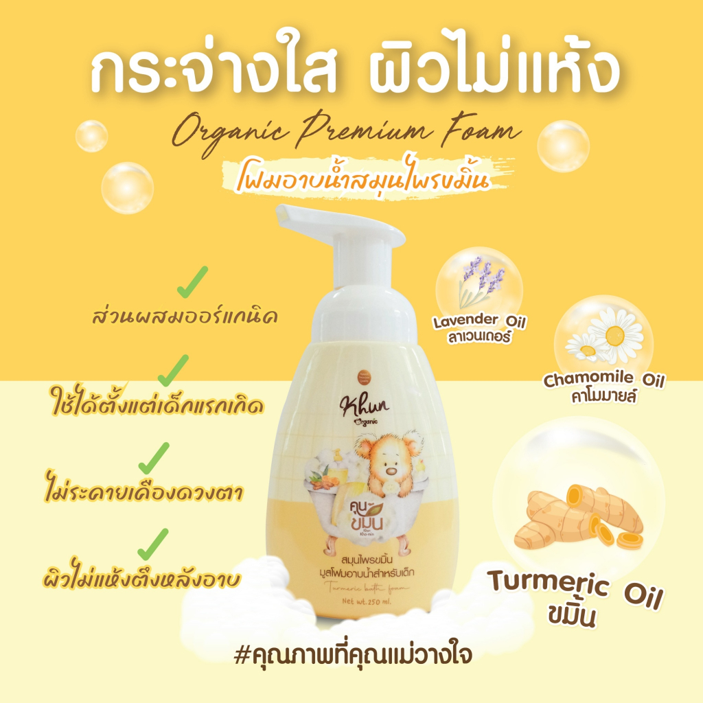 ล็อตใหม่! Khun ขมิ้นโฟมอาบน้ำเด็ก สมุนไพรอาบน้ำเด็ก ออร์แกนิค ใช้ง่าย บำรุงผิวชุ่มชื้น ขาวสว่างใส ใช้ได้ตั้งแต่แรกเกิด