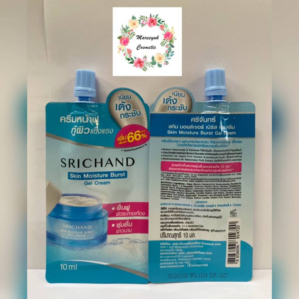 ศรีจันทร์ เจลครีม ครีมหน้าฟู ชุ่มชื้นจัดเต็ม ซอง10มล.