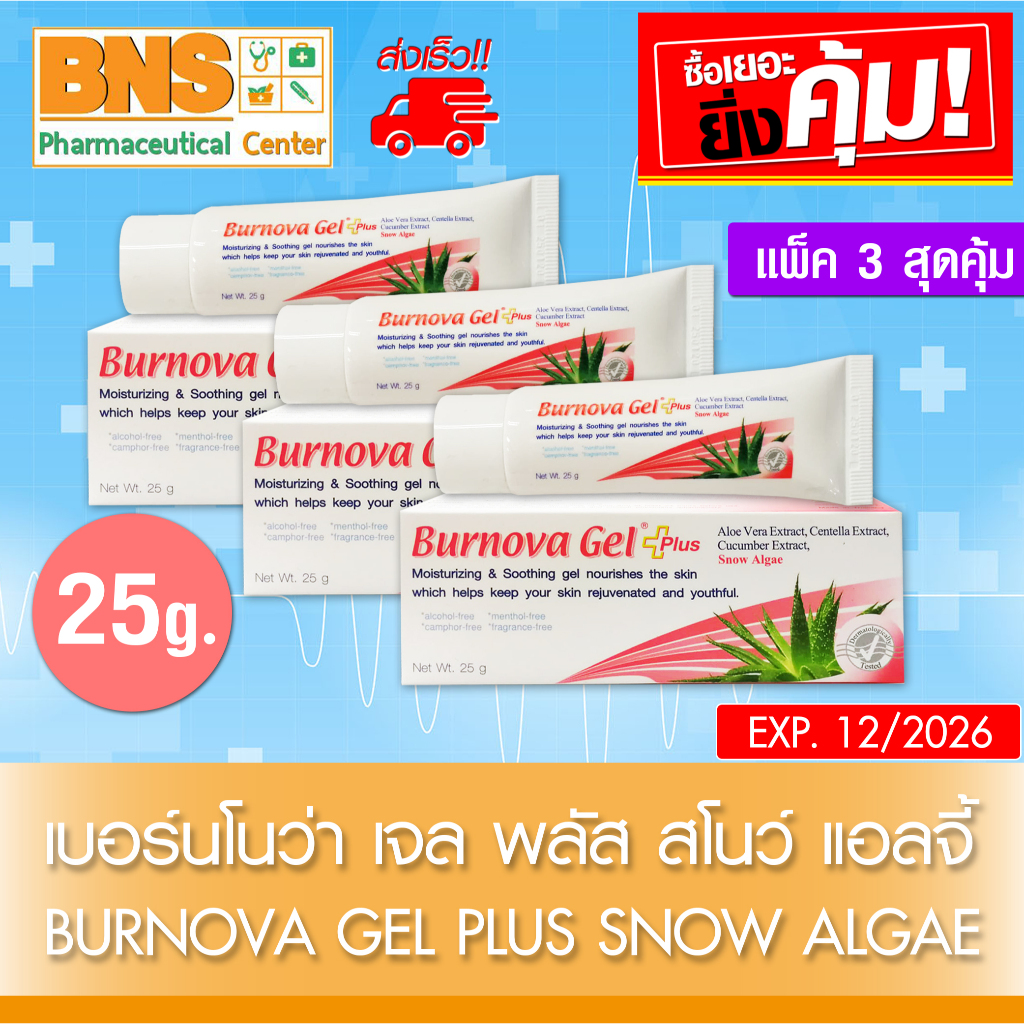 ส่งเร็ว !! ( แพ็ค 3 หลอด ) Burnova gel plus snow เบอร์นโนว่า เจล พลัส สโนว์ แอลจี้ ขนาด 25 กรัม (ถูกที่สุด)