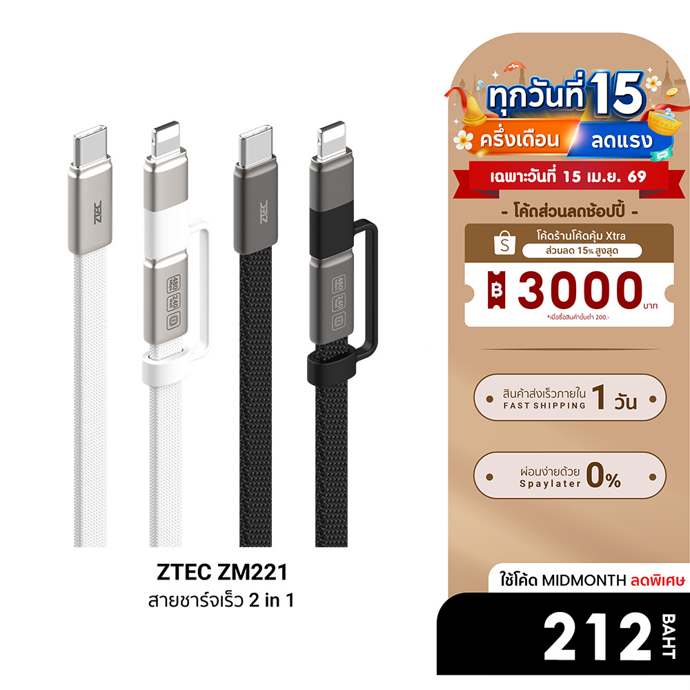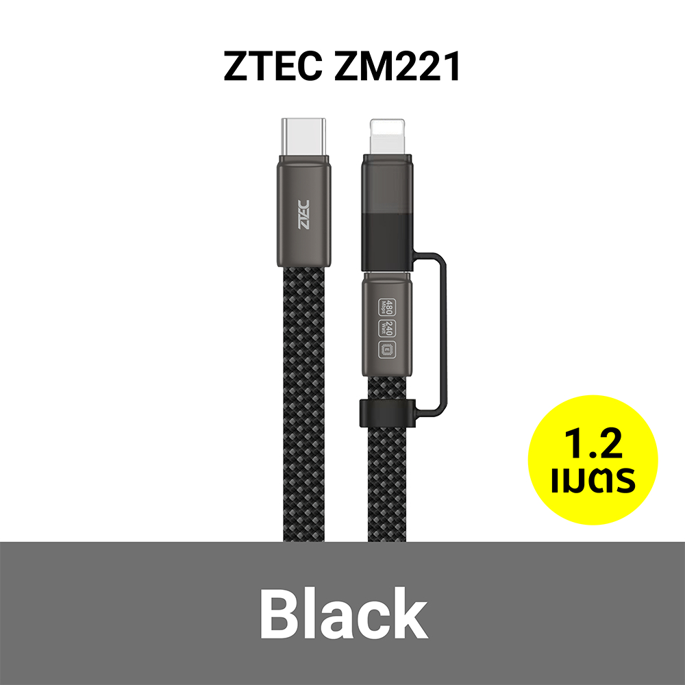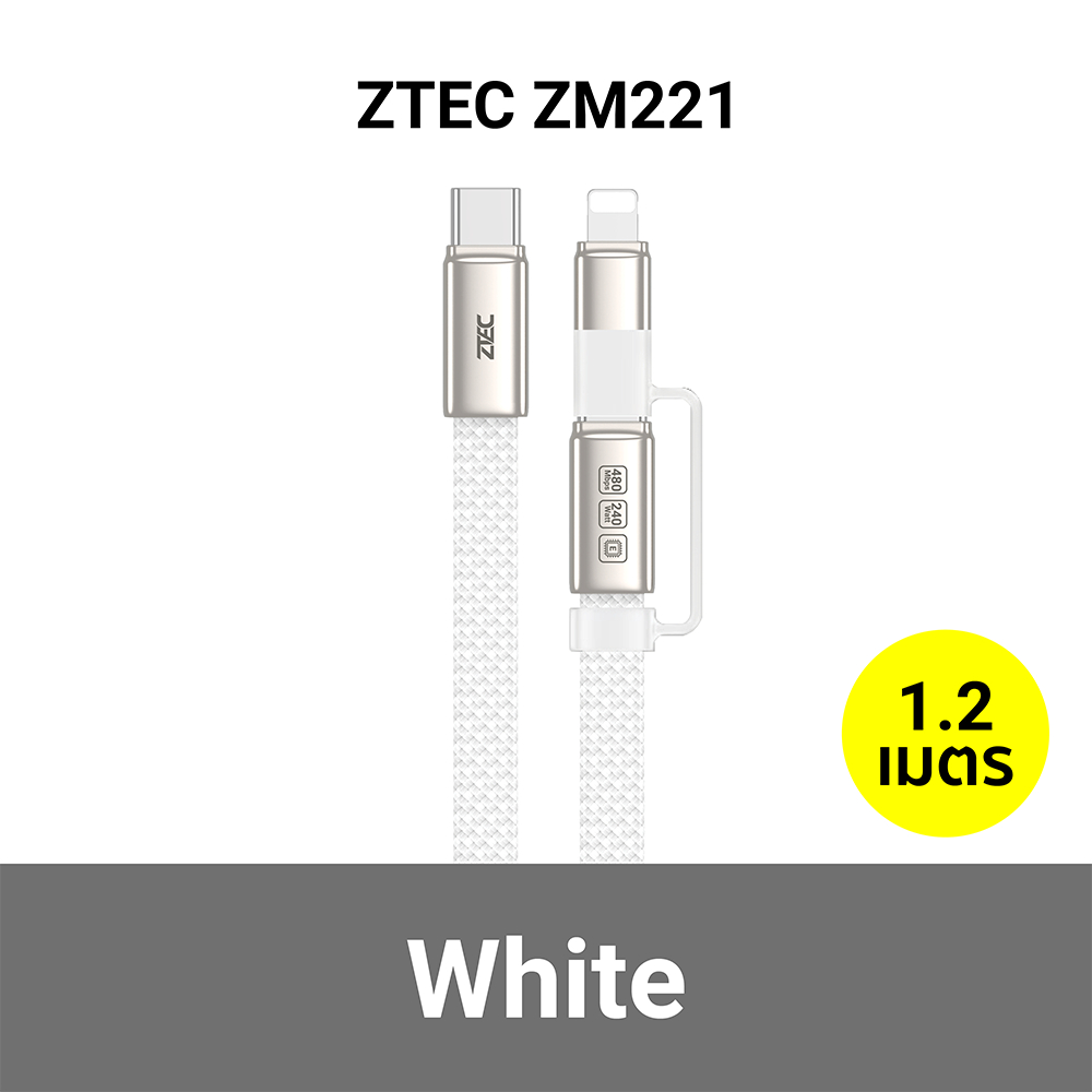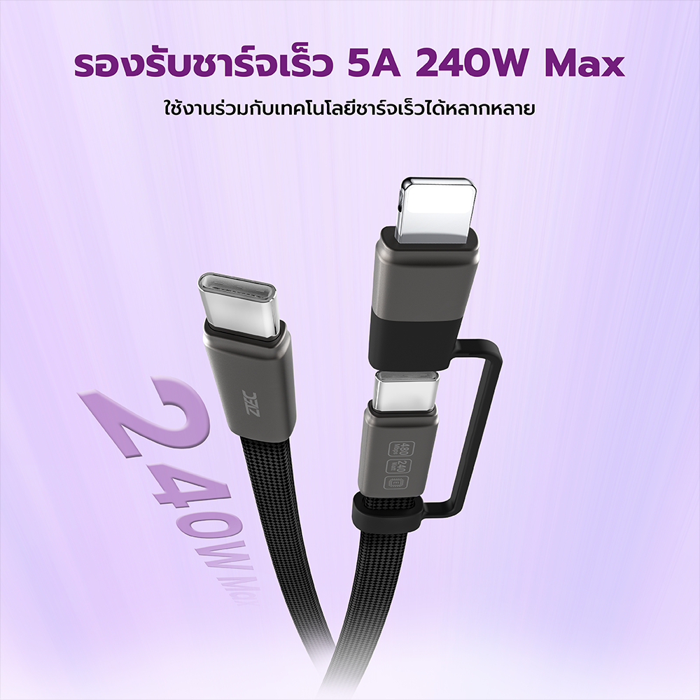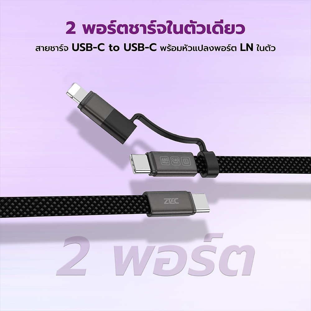 [ลดเหลือ 212] ZTEC ZM221 สายชาร์จ 2 in 1 5A 240W USB-C to USB-C & LN วัสดุสายถัก ความยาว 1.2 เมตร -2Y