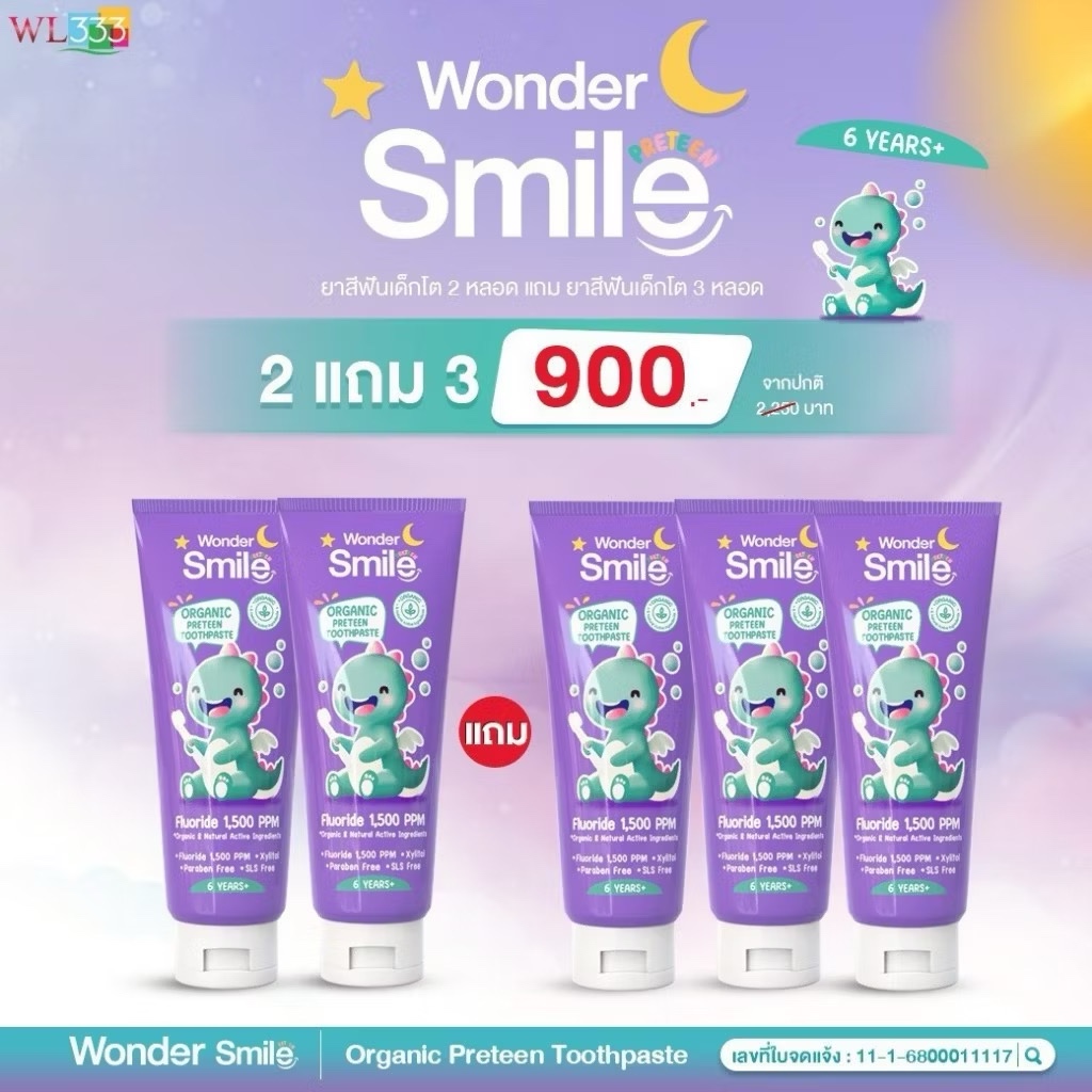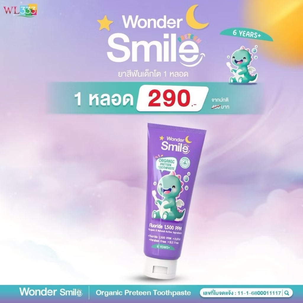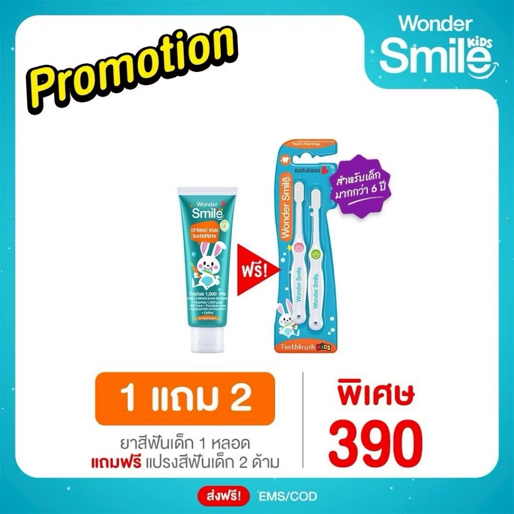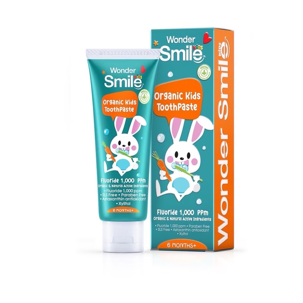 [ในไลฟ์ลด50%]ยาสีฟันเด็ก Wonder Smile Kids ยาสีฟันออแกนิค วันเดอร์สมายด์คิดส์ เด็กกลืนได้