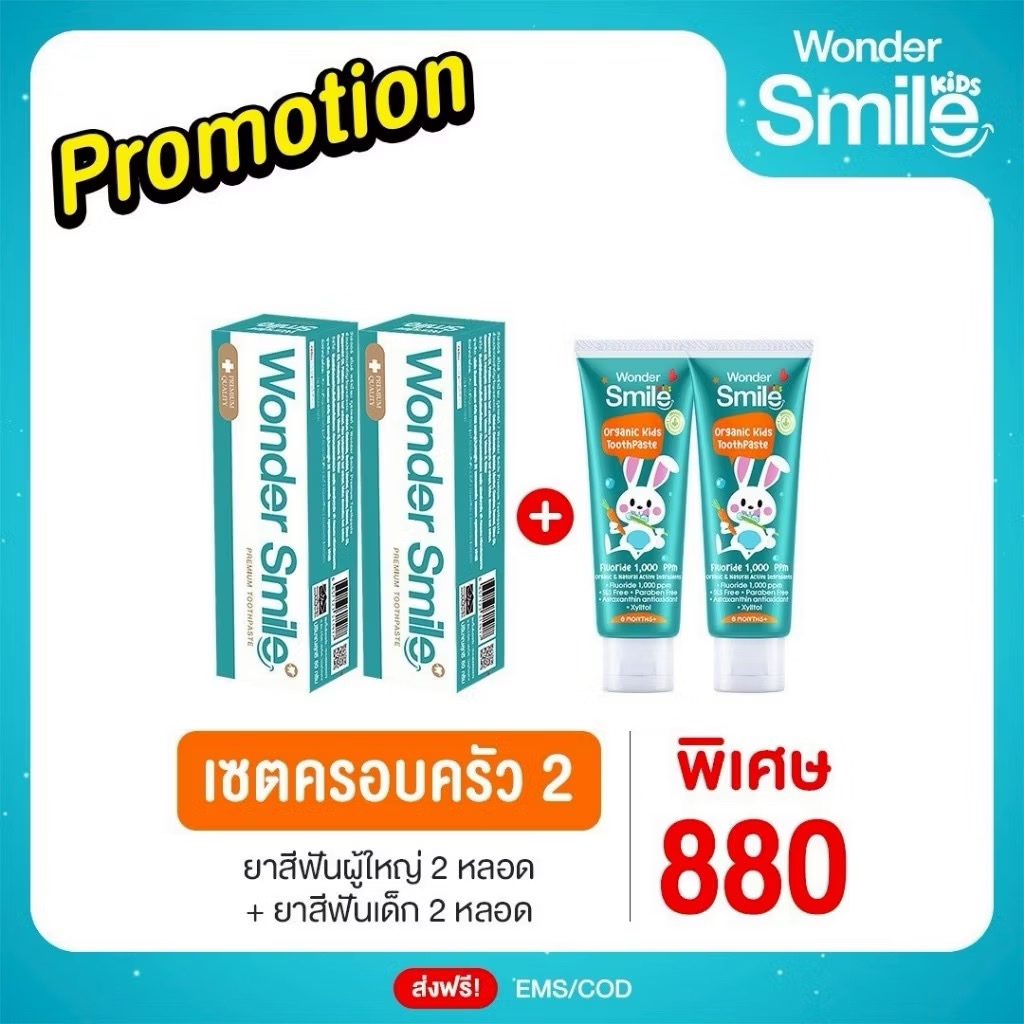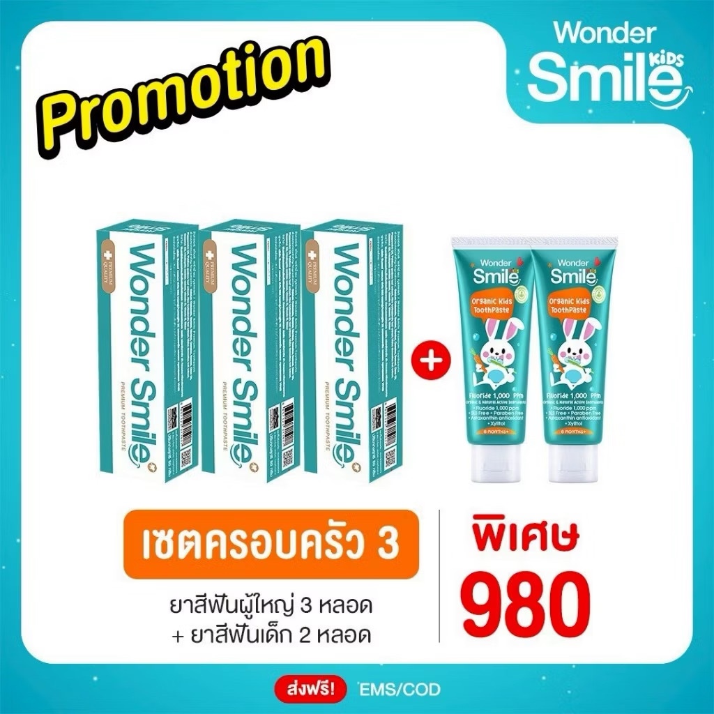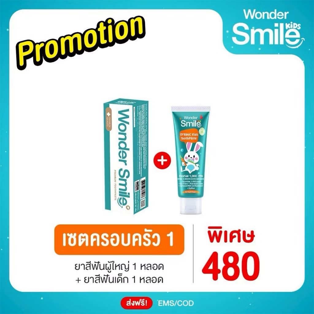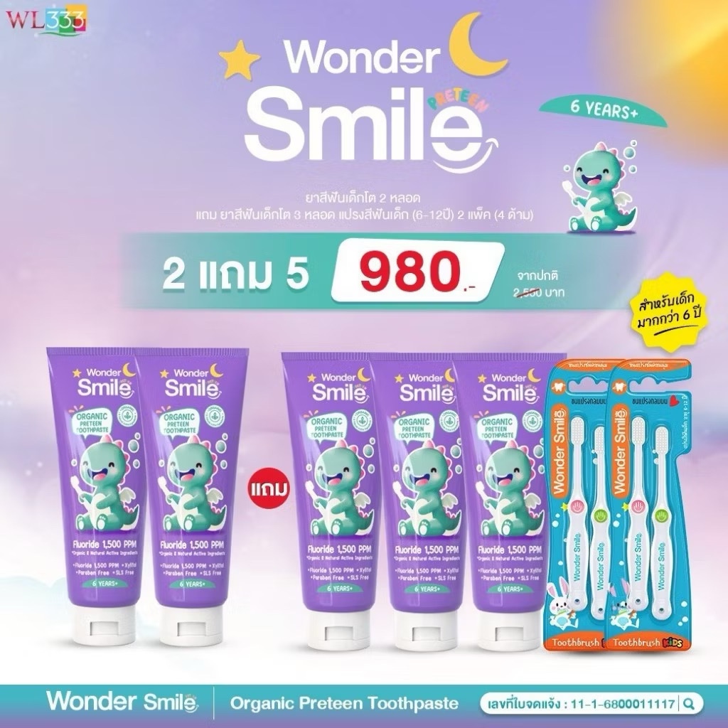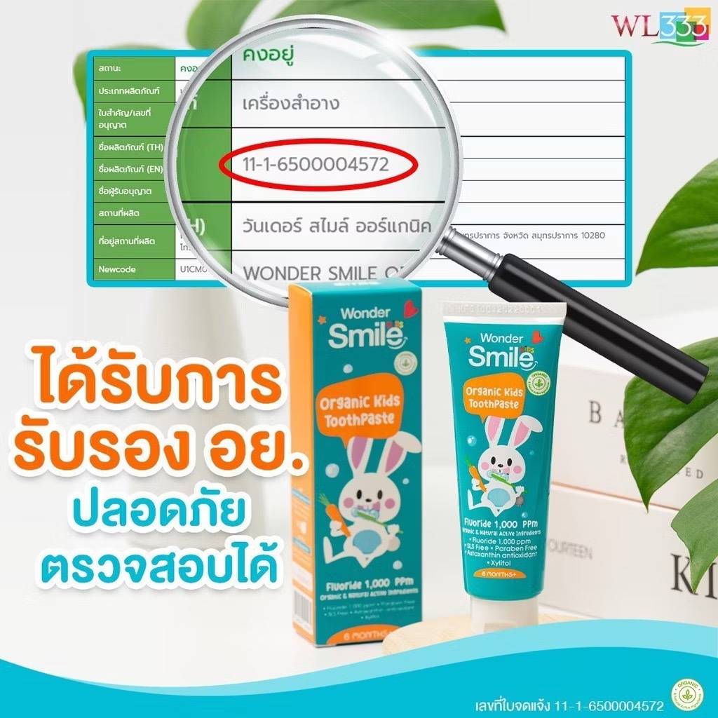 [ในไลฟ์ลด50%]ยาสีฟันเด็ก Wonder Smile Kids ยาสีฟันออแกนิค วันเดอร์สมายด์คิดส์ เด็กกลืนได้