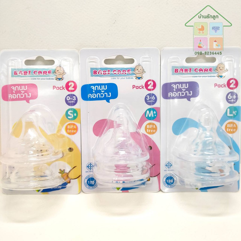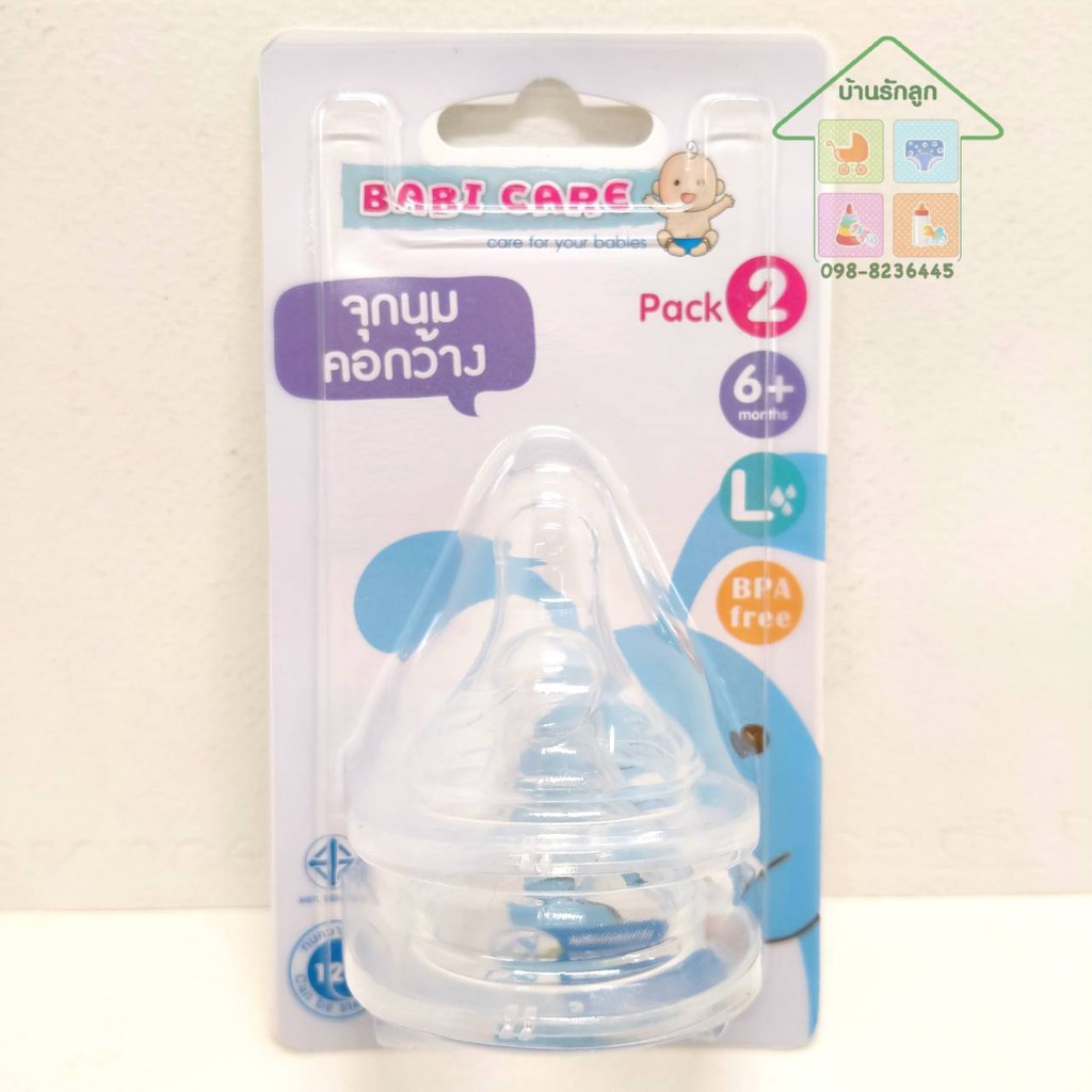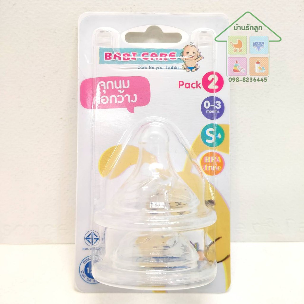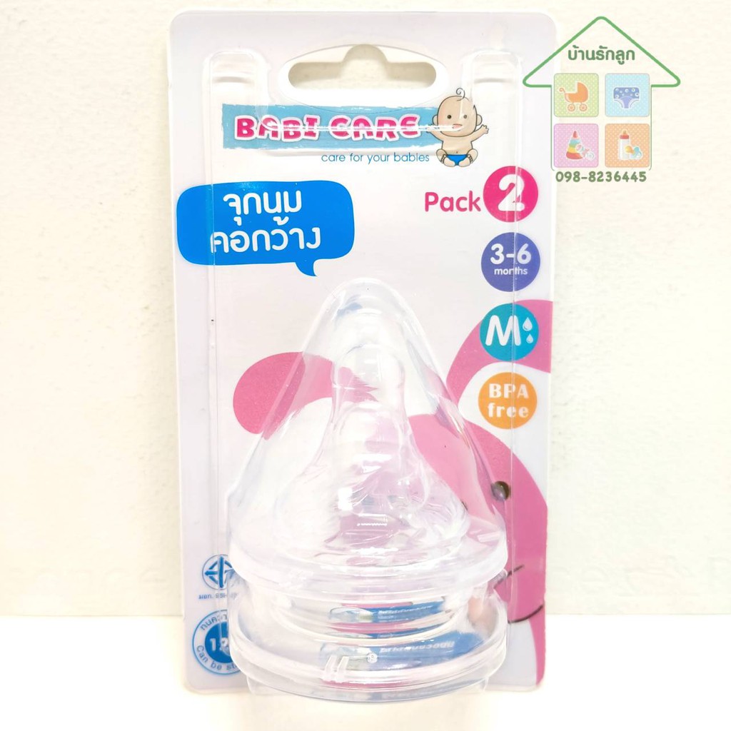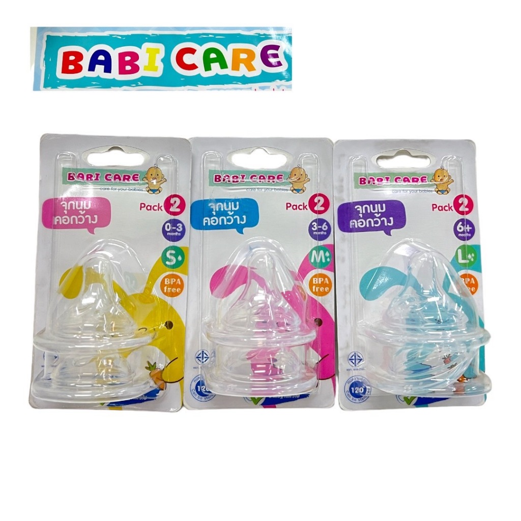 BABI CARE เบบี้แคร์ จุกนมคอกว้าง (ระบุไซส์) แพ็ค2จุก จำนวน1แพ็ค