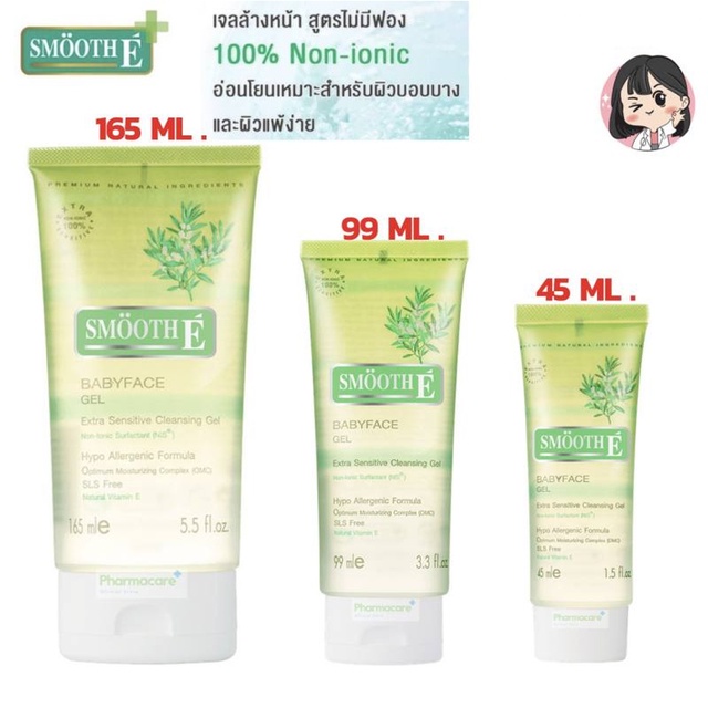 Smooth E Babyface สูตร EXtra Sensitive Cleansing gel 45 ML./ 99 ML./165 ML. เจล ล้างหน้าสูตรไม่มีฟอง [PLine]