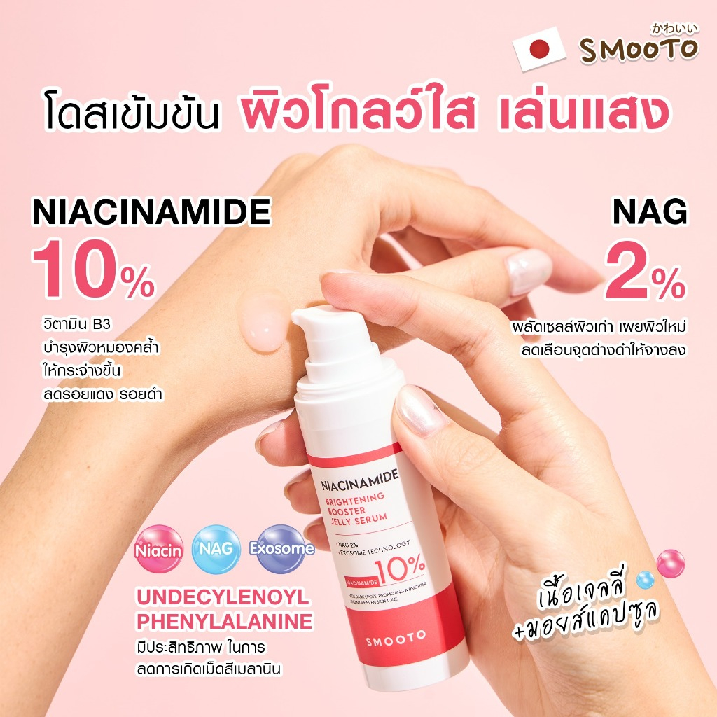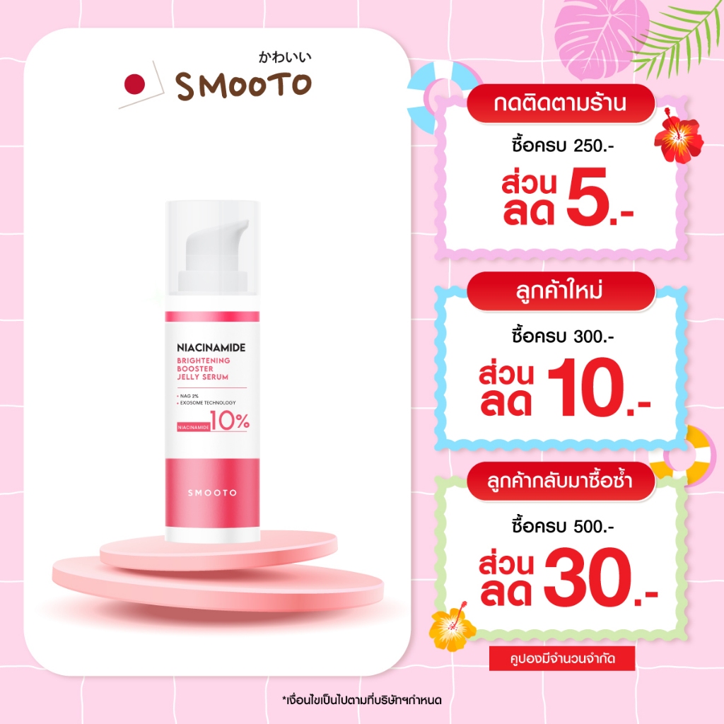 SMOOTO Official สมูทโตะ ไนอาซินาไมด์ ไบร์ทเทนนิ่ง บูสเตอร์ เจลลี ่ เซรั่ม 30กรัม (SMT171 / ขวด)