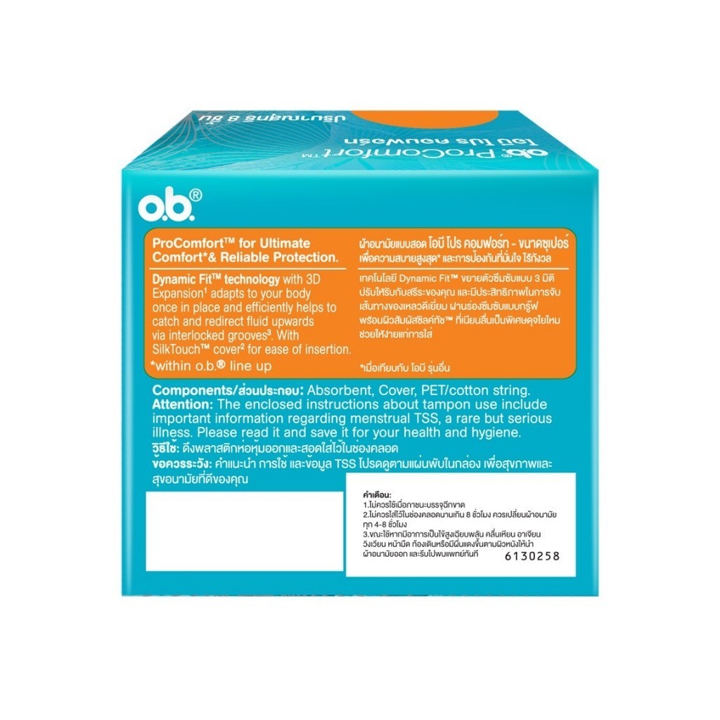 โอบี โปรคอมฟอร์ท ซูเปอร์ 8ชิ้น O.B. ProComfort (Blossom) Super 8 tampons