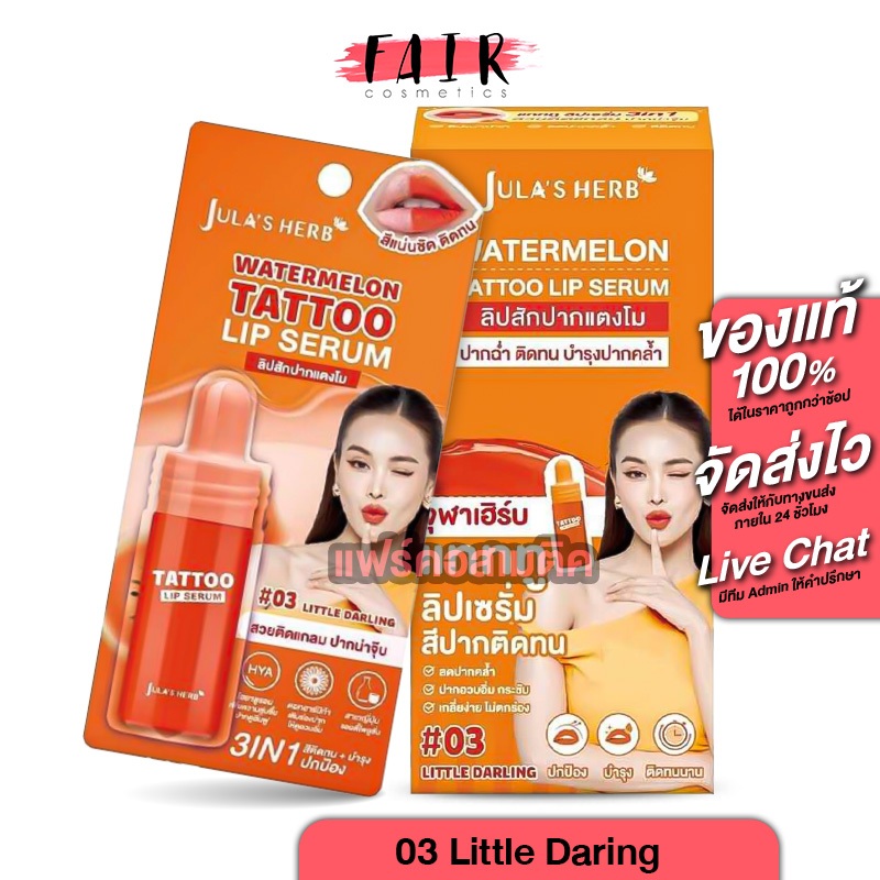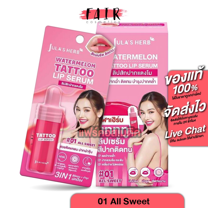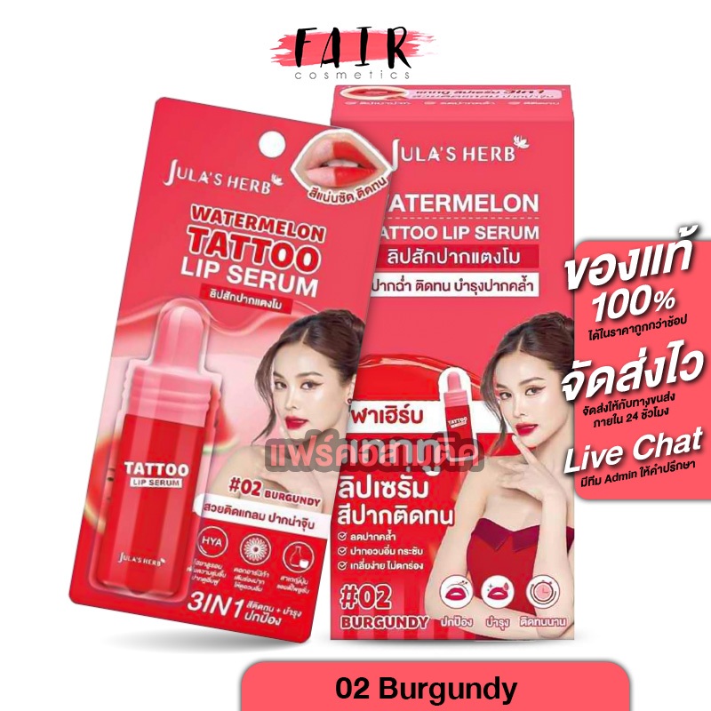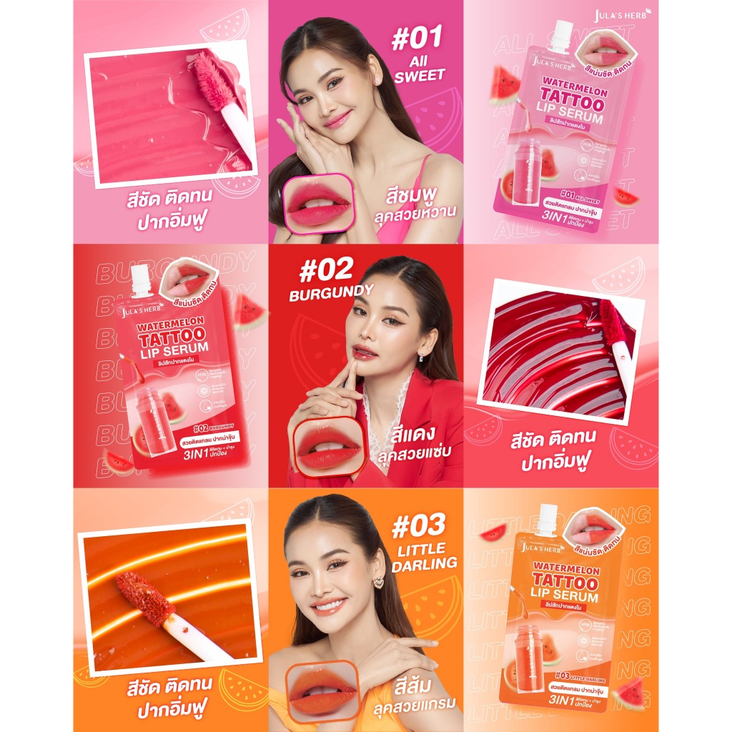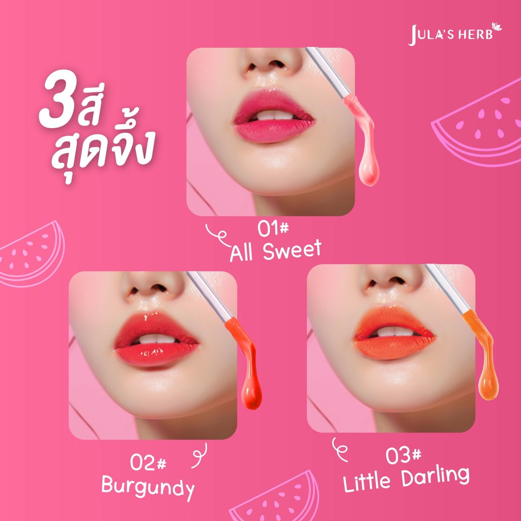 [1 แถม 1] Jula’s Herb Watermelon Tattoo Lip จุฬา เฮิร์บ วอเตอร์เมล่อน แทททู ลิป เซรั่ม [สินค้ามีให้เลือก 3 สี] ลิปอิงฟ้า