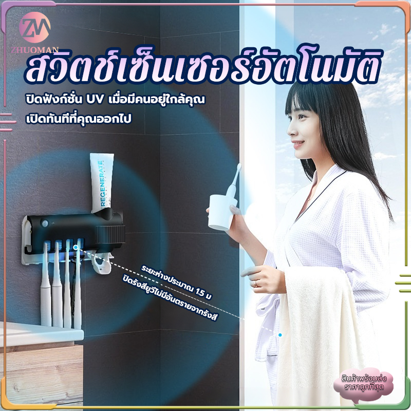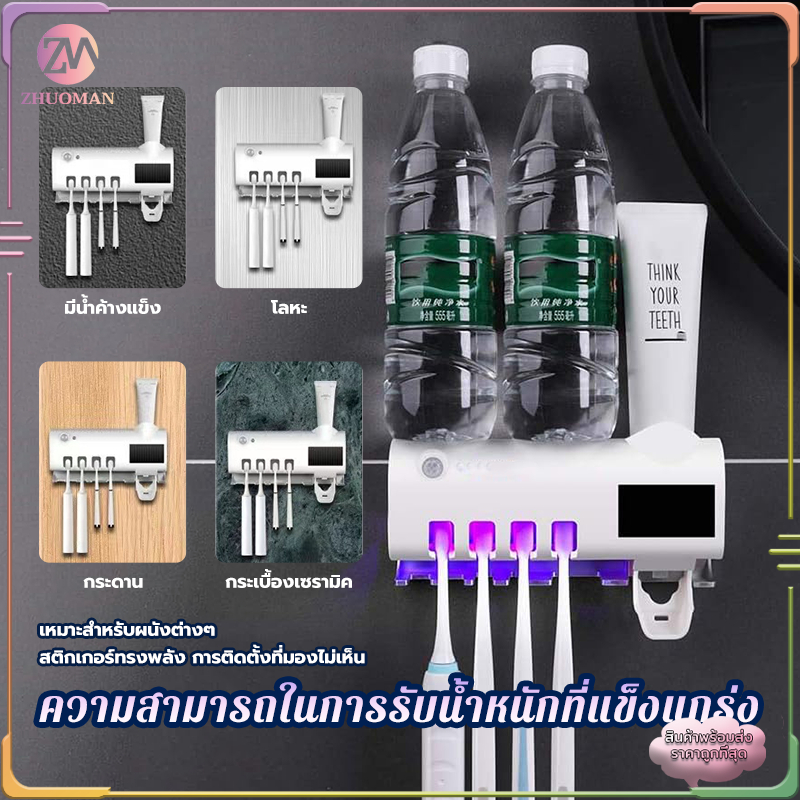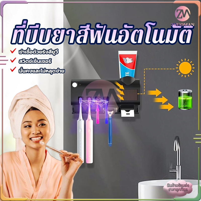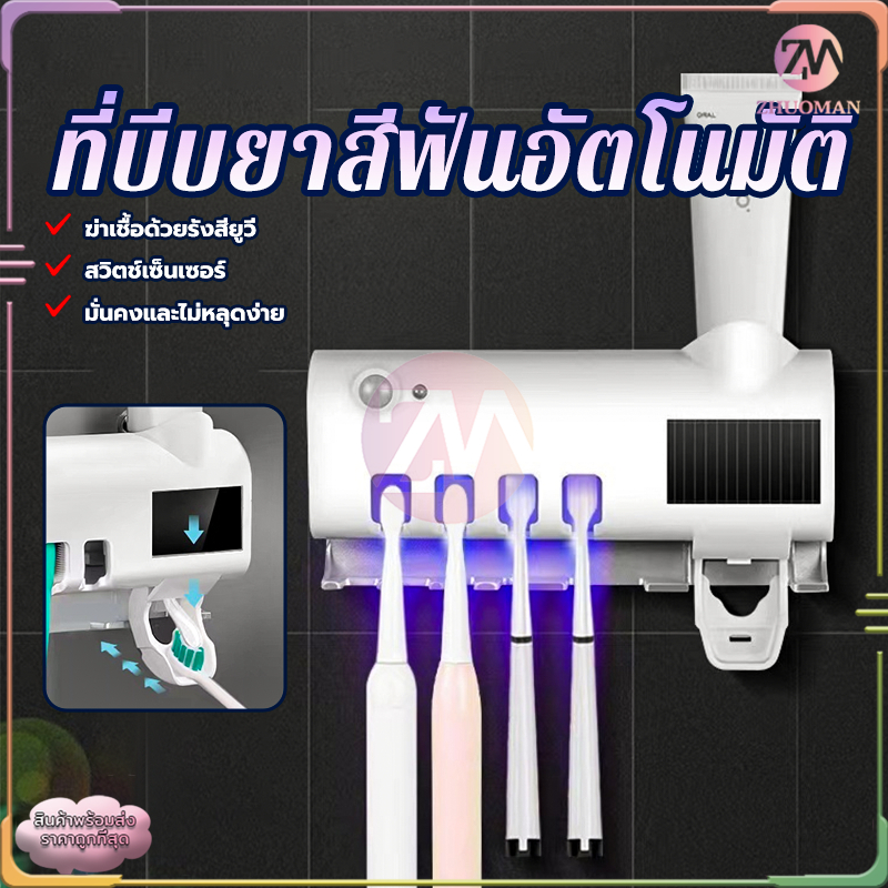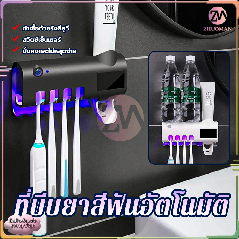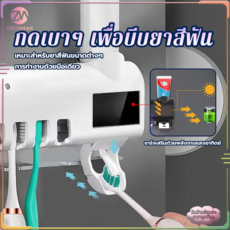 ที่บีบยาสีฟันอัตโนมัติ เครื่องบีบยาสีฟัน ที่ใส่หลอดยาสีฟัน ที่แขวนแปรงสีฟัน ระบบฆ่าเชื้ออัจฉริยะ ไม่ทำลายผนัง