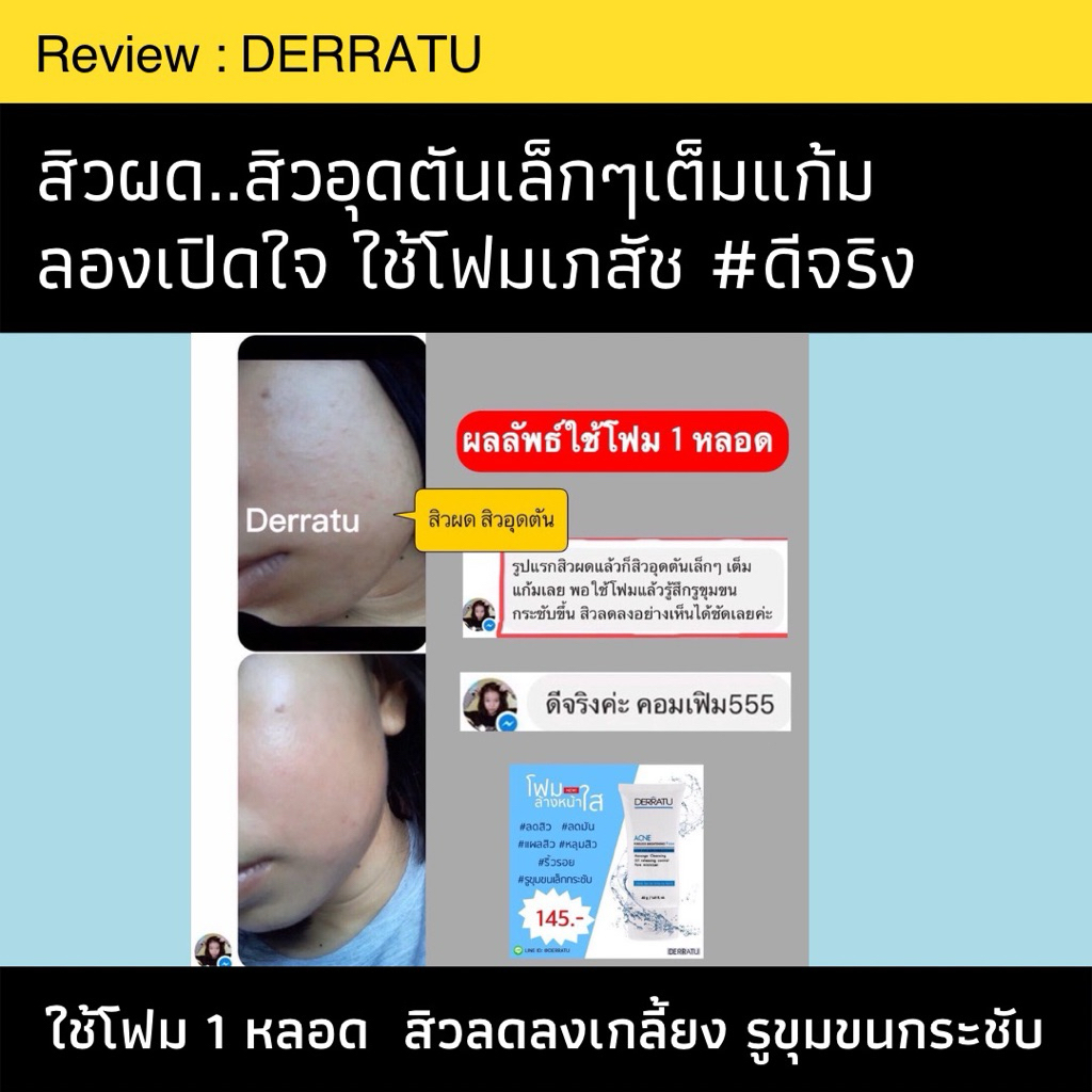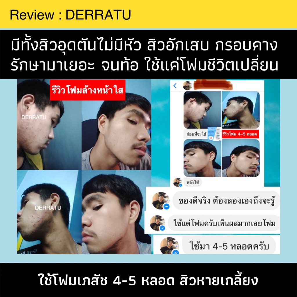 โฟมล้างหน้า 40g DERRATU สิวผด สิวยีสต์ สิวอุดตัน สิวอักเสบ ผิวติดสาร ลดมัน แผลสิว รูขุมขนกระชับ