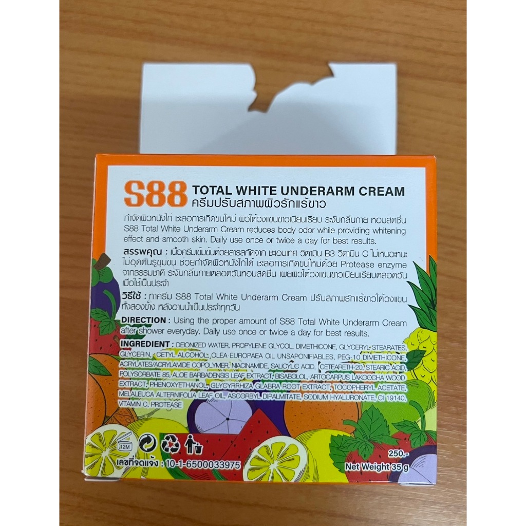 แท้ ✅ ครีมบำรุงผิวใต้วงแขน S88 ( ยกโหล X 12 )Total White Underarm Cream 35 g