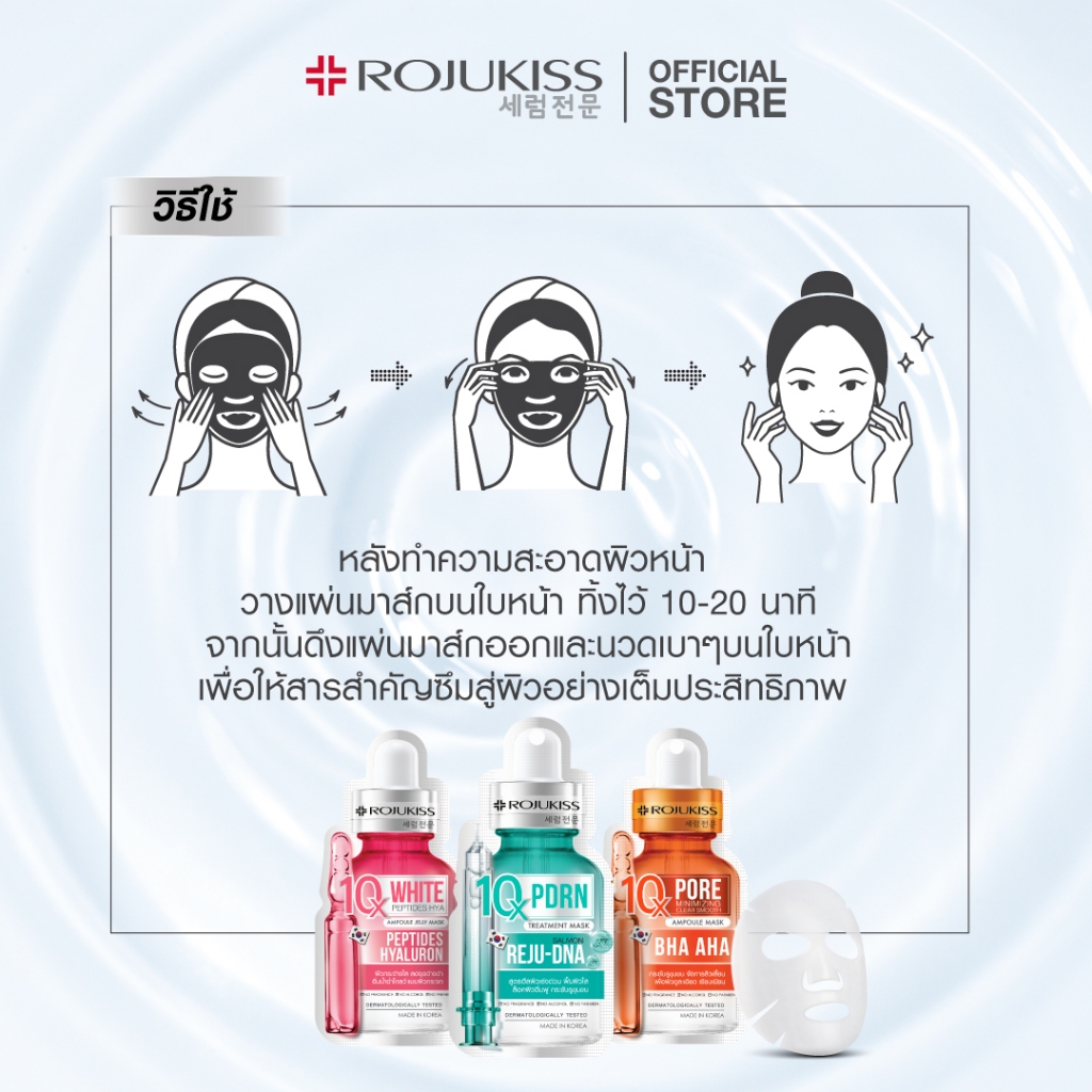 (12ชิ้น/กล่อง) Rojukiss โรจูคิส พอร์ มินิไมซิ่ง เคลียร์ สมูท 10X แอมพูล มาส์ก กล่องส้ม กระชับ [3840]