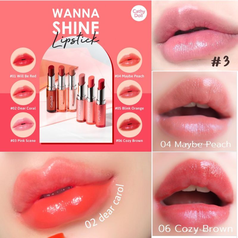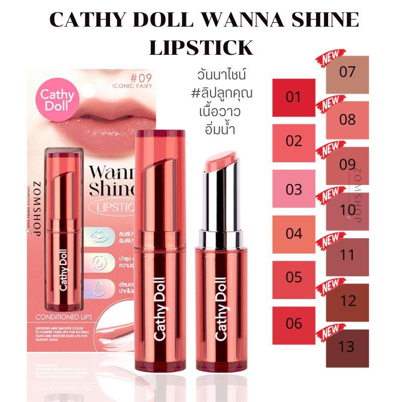 Cathy Doll ลิปสติก【วันนาไชน์】เนื้อวาว เปล่งปลั่งอิ่มน้ำ Cathy Doll Wanna Shine Lipstick 3g