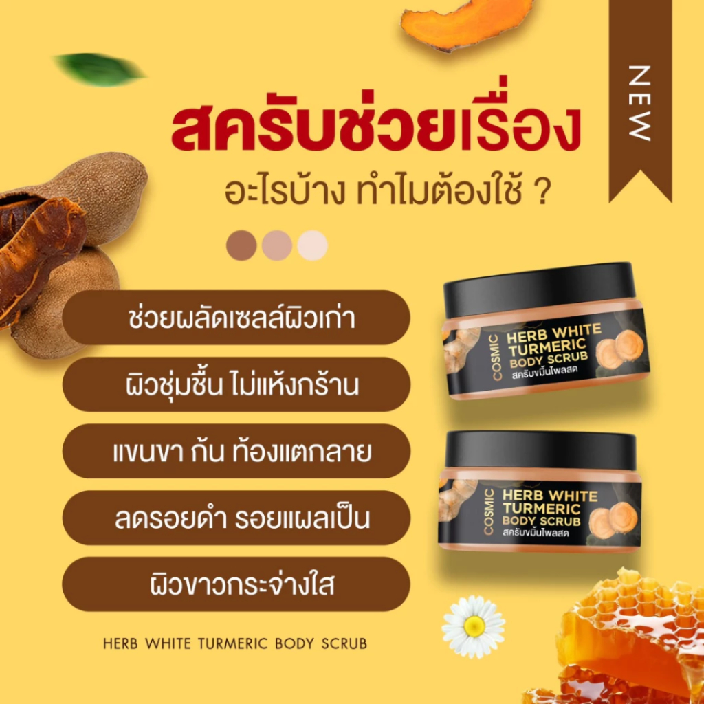 COSMIC สครับขมิ้นไพรสด ผิวกระจ่างใส สครับแตกตัวเป็นน้ำนม สครับเนื้อสมุนไพร เนียนละเอียดไม่บาดผิว