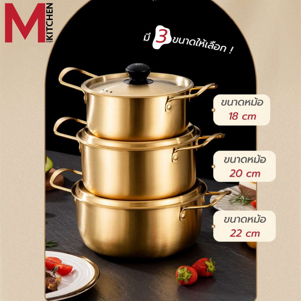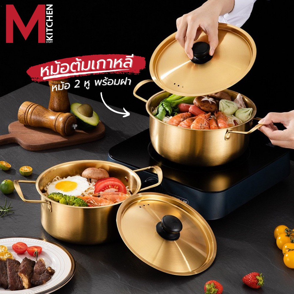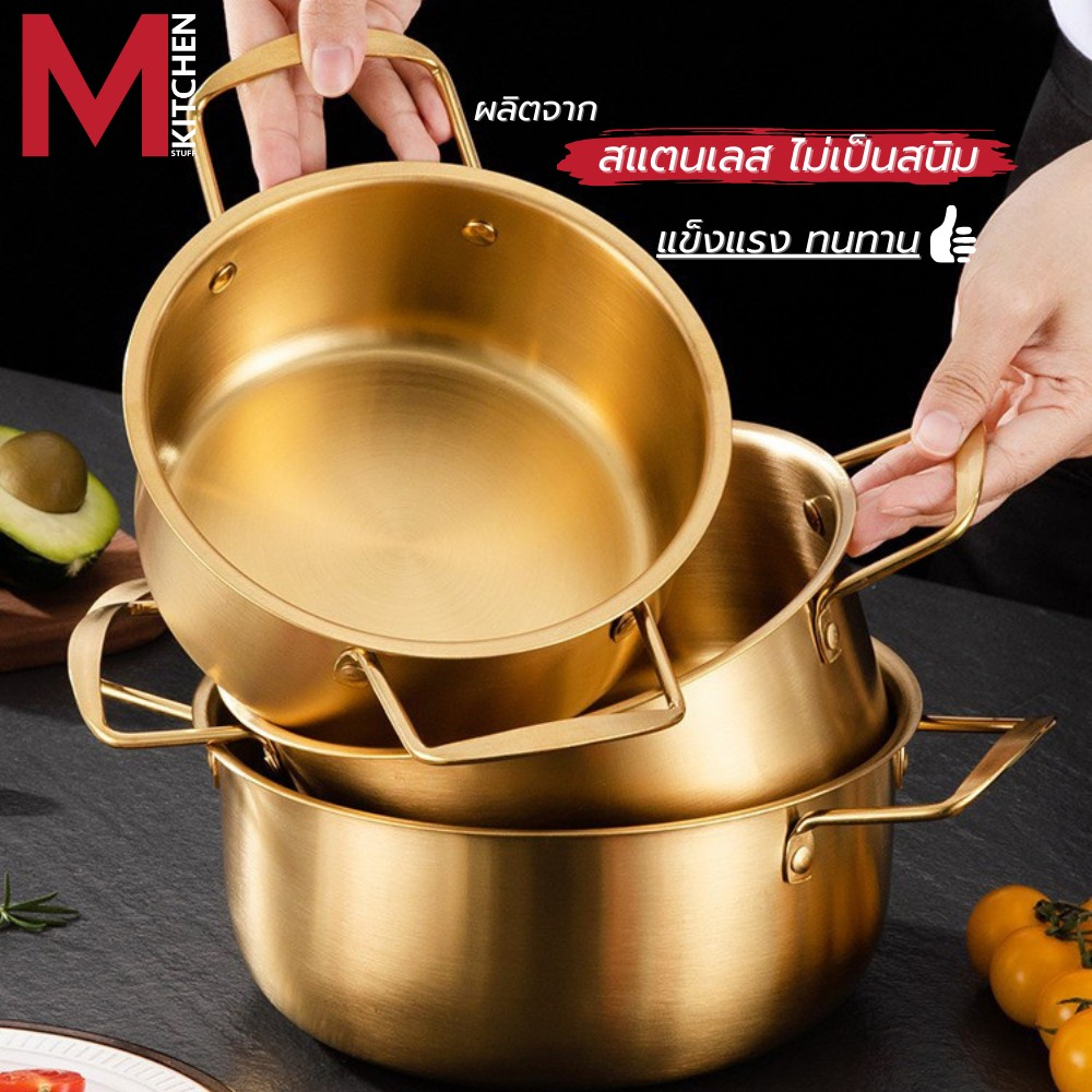 M KITCHEN หม้อ หม้อเกาหลี หม้อรามยอน หม้ อสองหู พร้อมฝา หม้อทองเหลือง หม้อสแตนเลส หม้อมาม่า (A1)