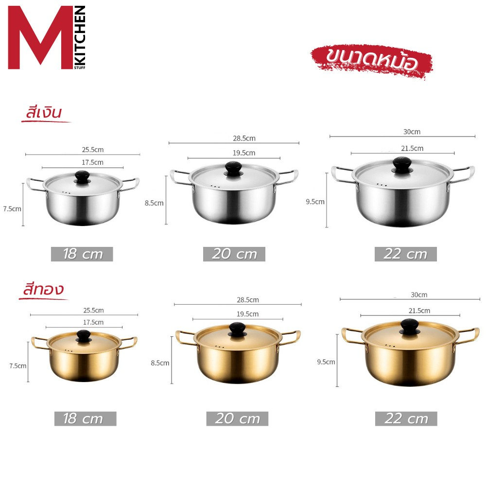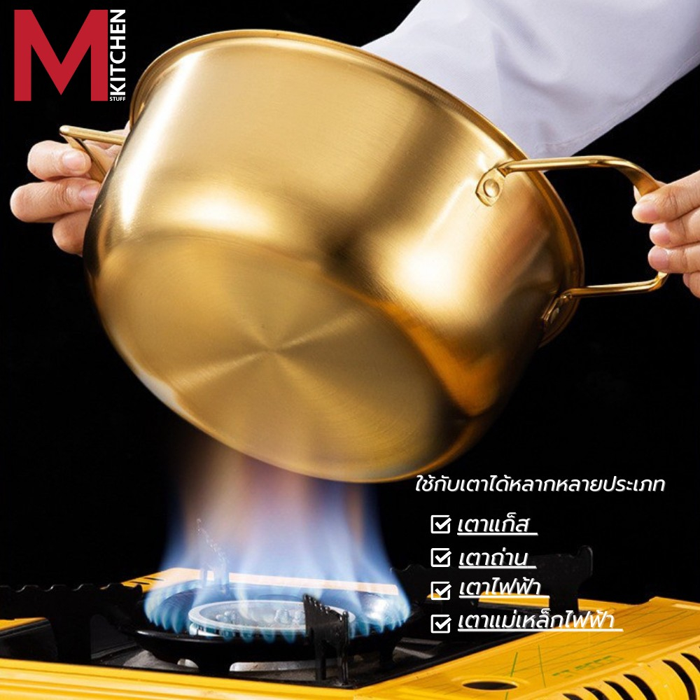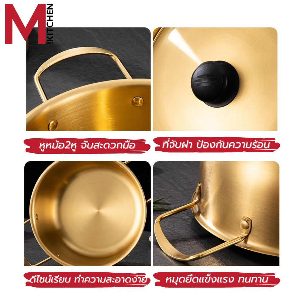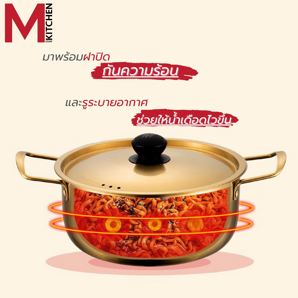 M KITCHEN หม้อ หม้อเกาหลี หม้อรามยอน หม้ อสองหู พร้อมฝา หม้อทองเหลือง หม้อสแตนเลส หม้อมาม่า (A1)