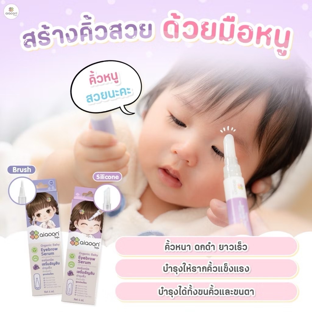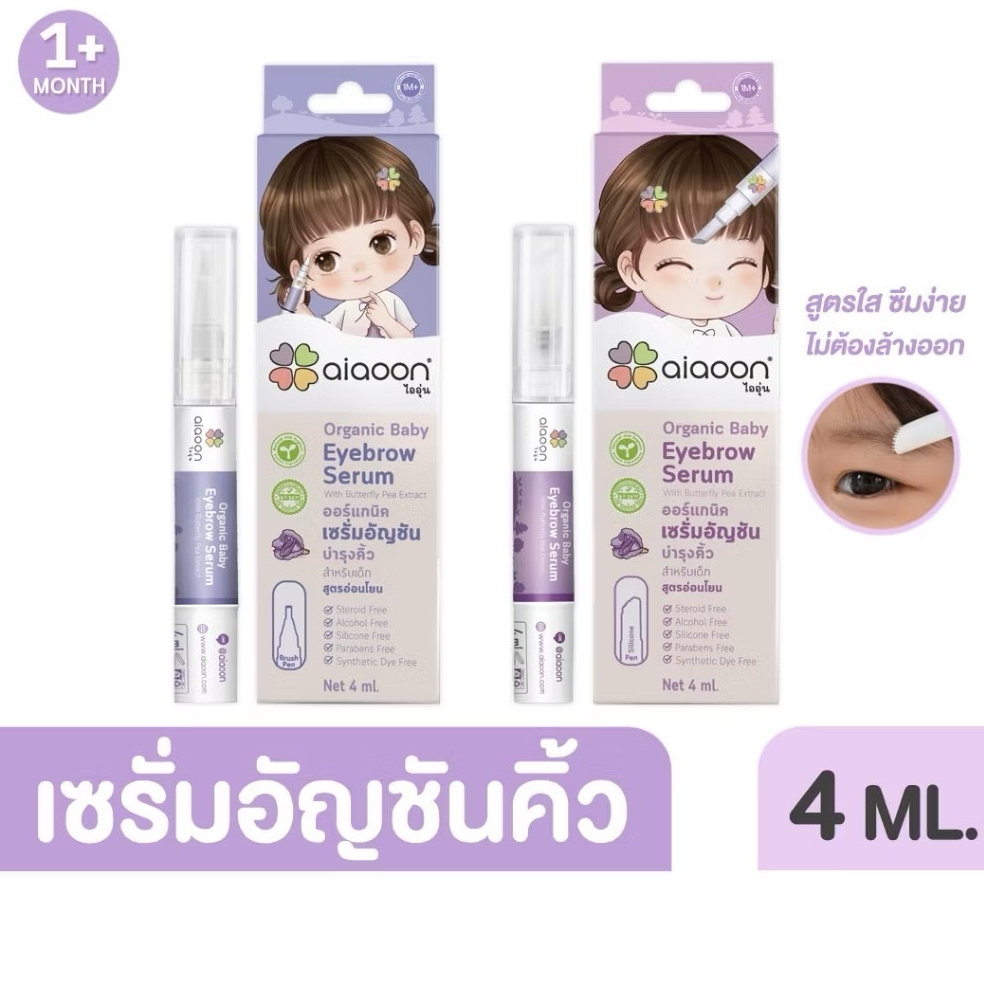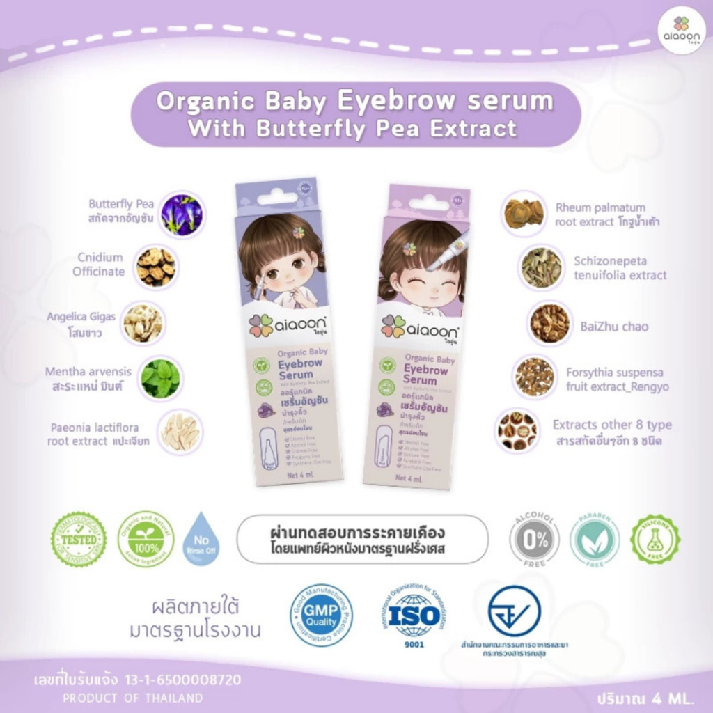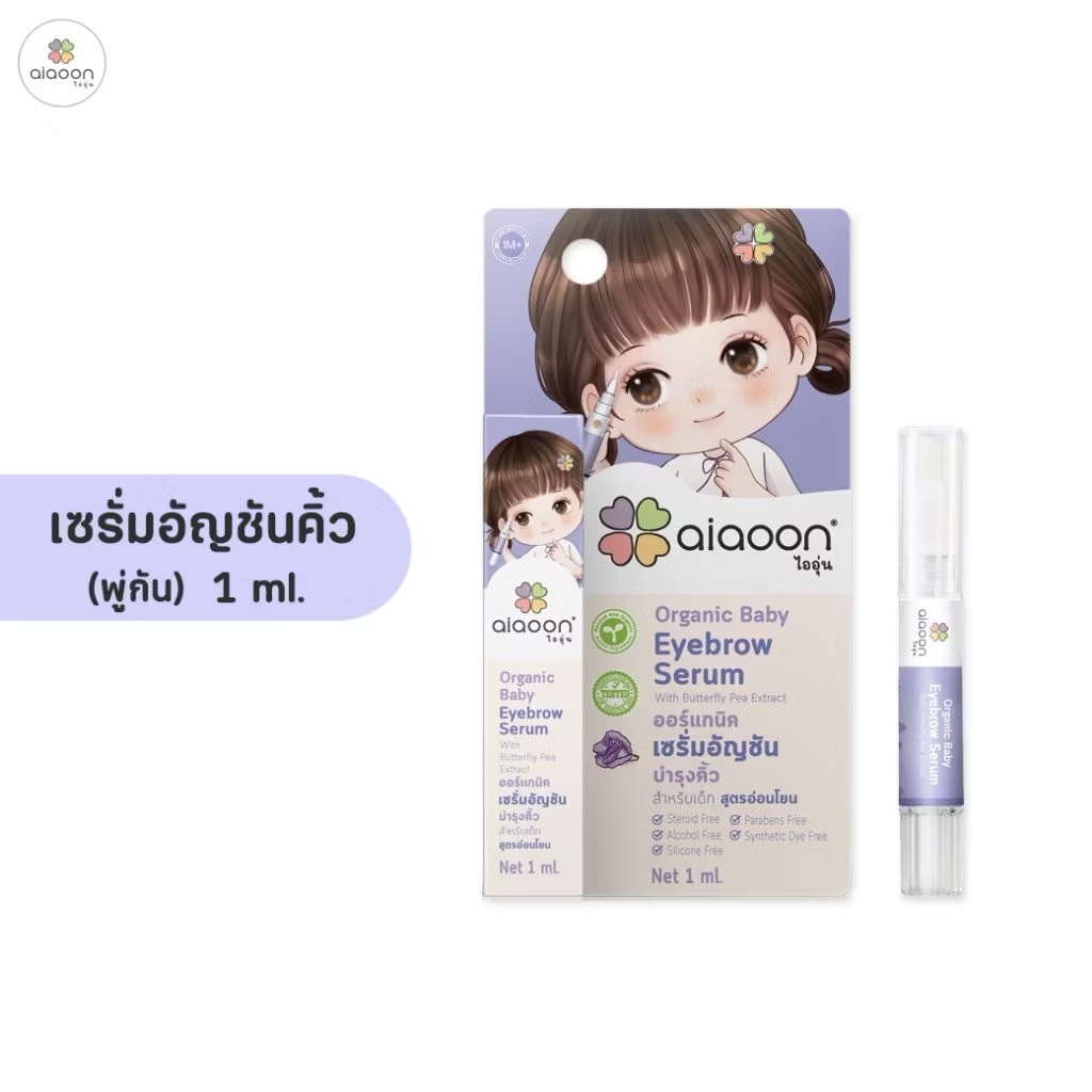 ไออุ่น เซรั่มอัญชันทาคิ้วเด็ก สำหรับเด็ก 1 เดือนขึ้นไป เพื่อคิ้วดกดำ เรียงตัวสวย จากธรรมชาติ100% ทาขนตาเด็กโตได้ Aiaoon