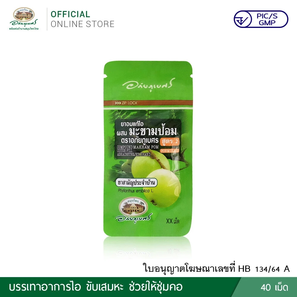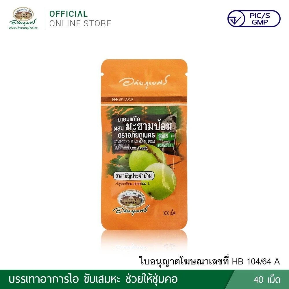 ยาอมแก้ไอผสมมะขามป้อม อภัยภูเบศร (สูตร 1 & สูตร 2) 1 ซองบรรจุ 40 เม็ด