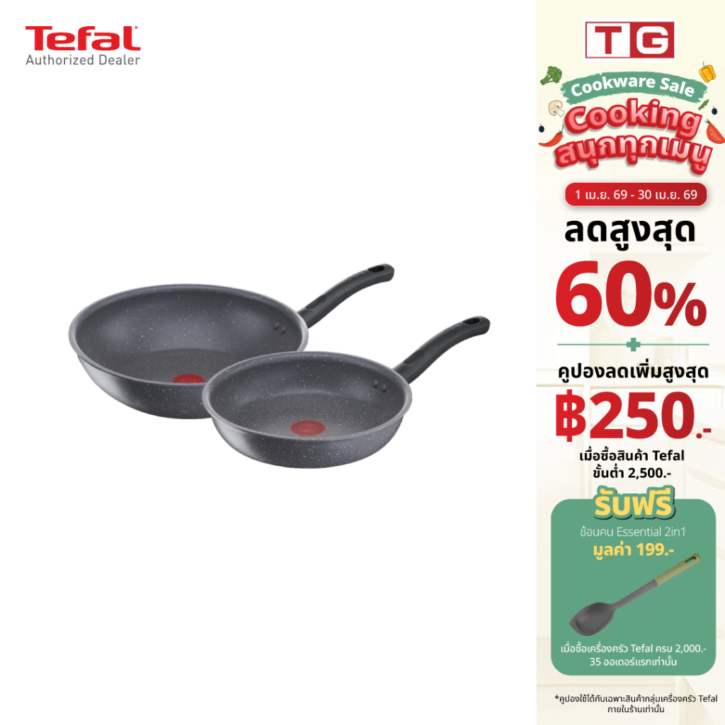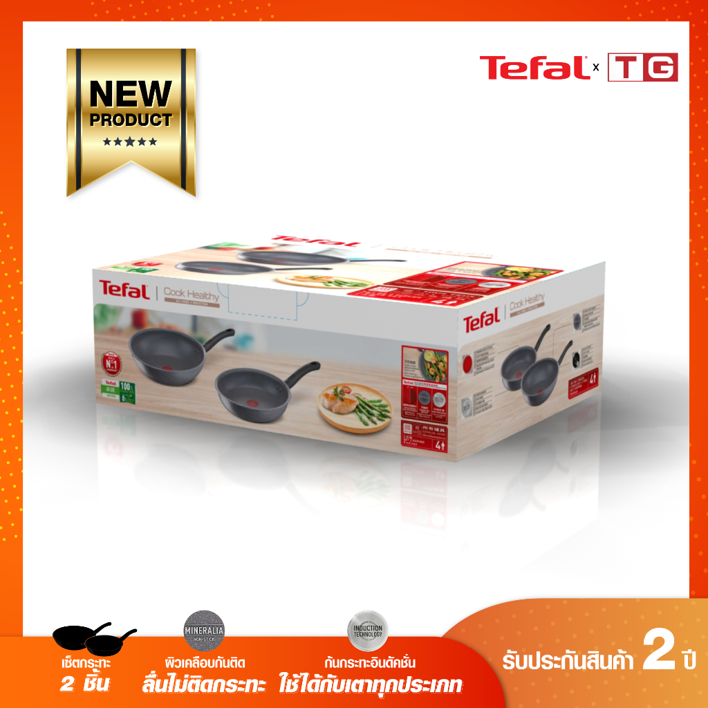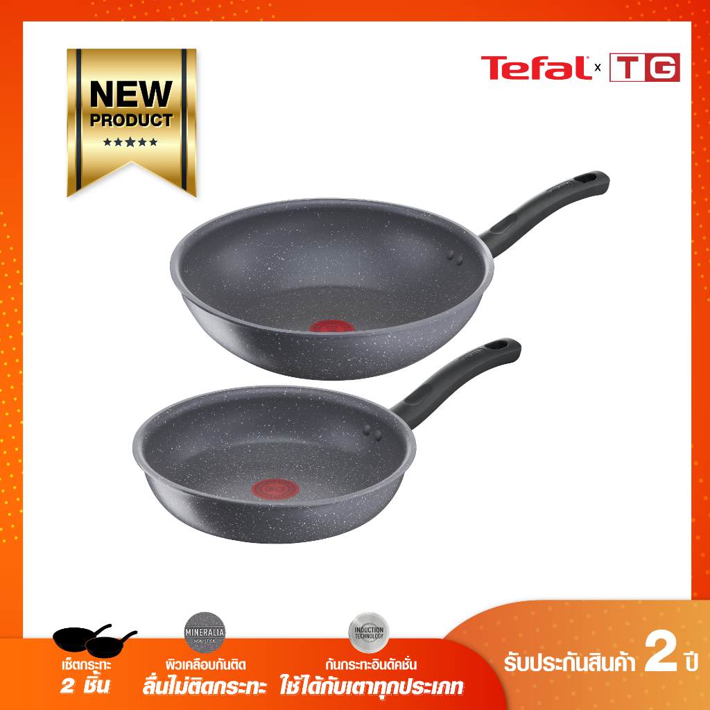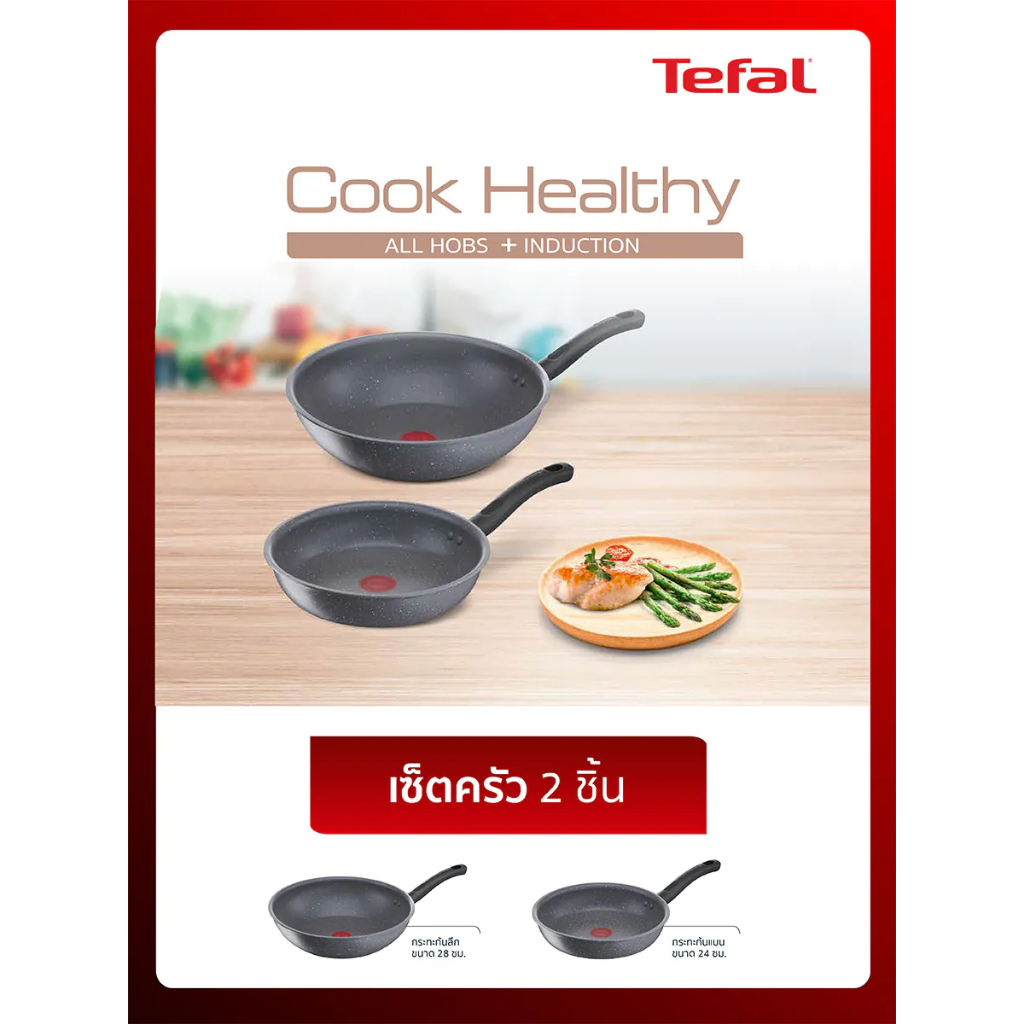 TEFAL เซ็ตกระทะ 2ชิ้น รุ่น G134S295 cook healthy กระทะก้นลึก ขนาด 28 ซม + กระทะก้นแบน ขนาด 24 ซม. รับประกันศูนย์ 2ปี
