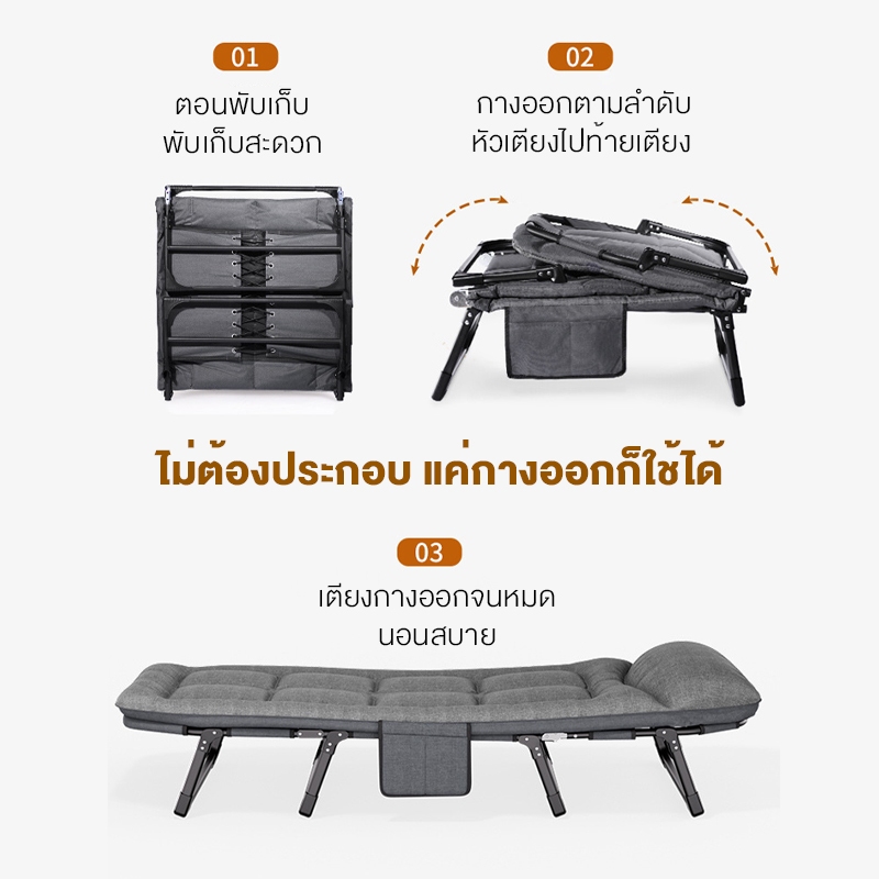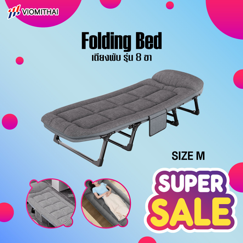 Folding Bed เตียงพับ รุ่น 8 ขา เตียงเดี่ยว เตียงพับ เก้าอี้ปรับระดับได้ ไม่ต้องติดตั้ง พกพาสะดวก