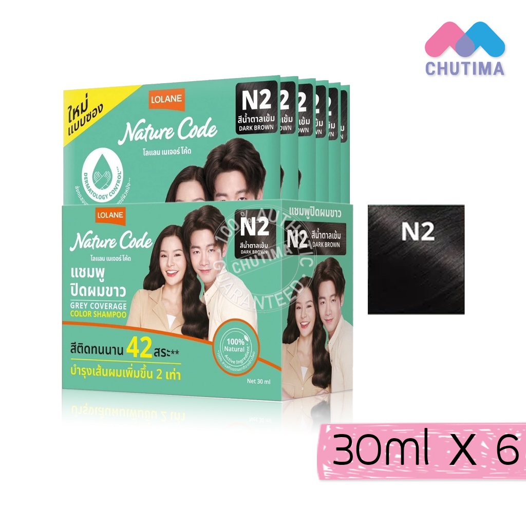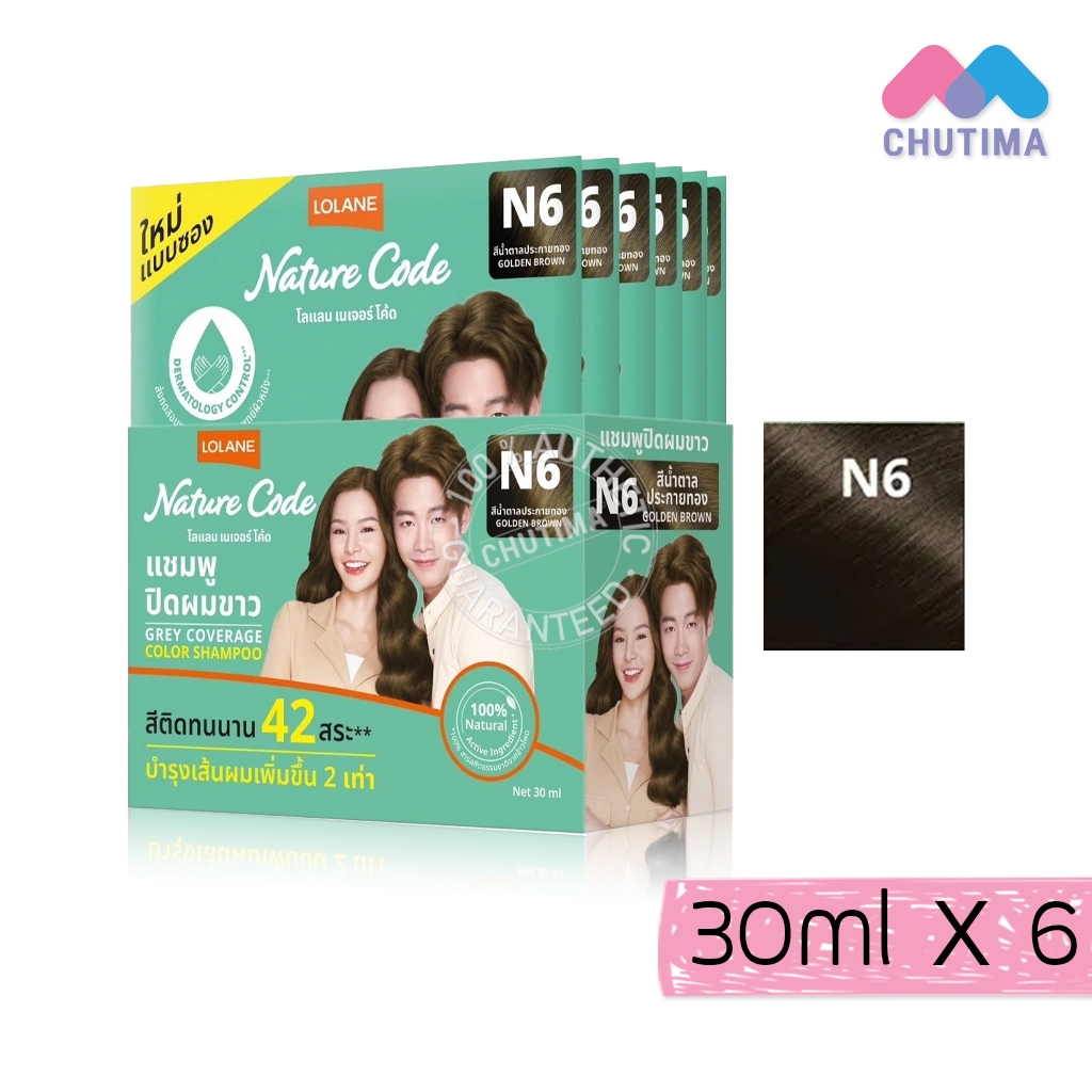 (กล่อง x6) โลแลน เนเจอร์ โค้ด แชมพูปิดผมขาว Lolane Nature Code Grey Coverage Color Shampoo 30 ml.x6