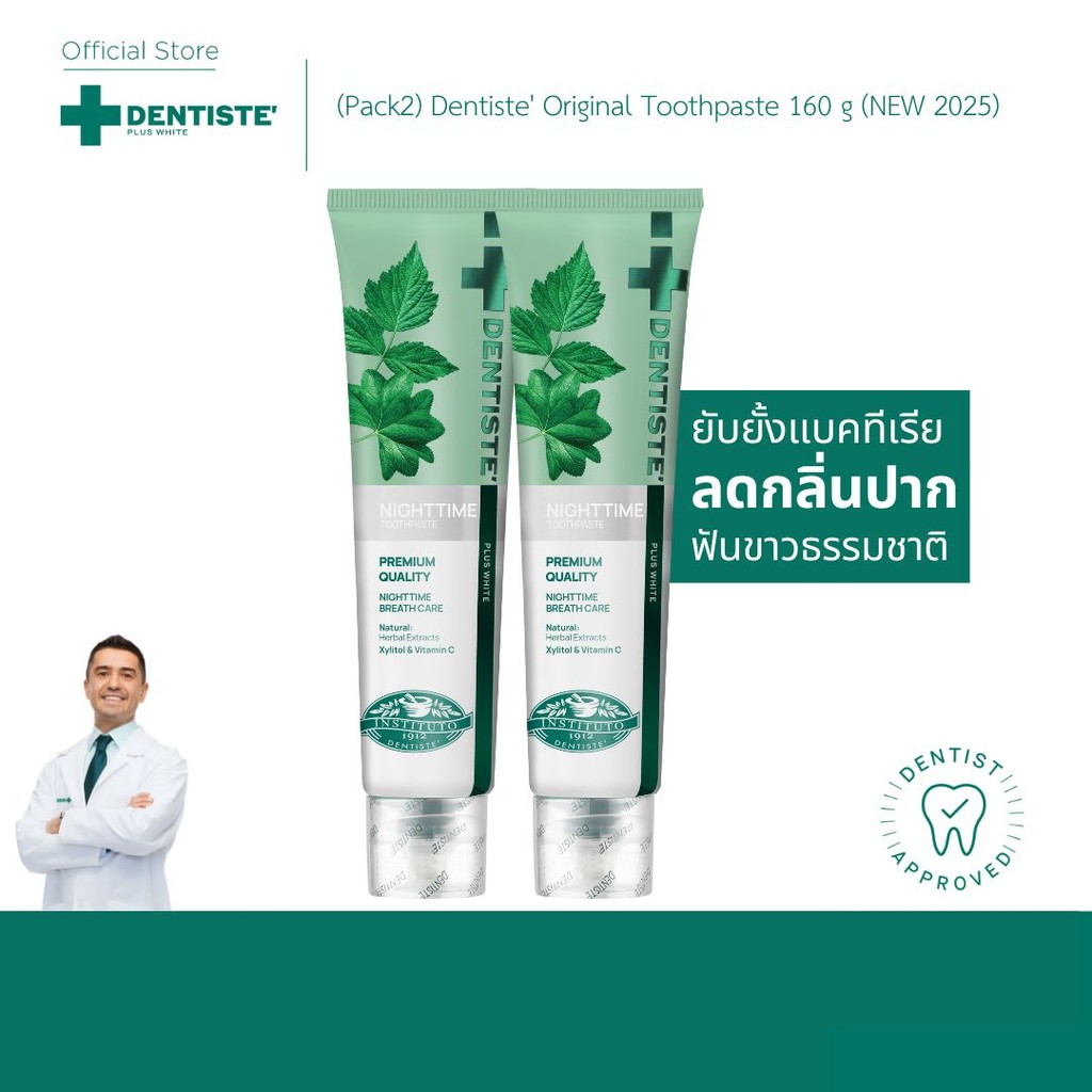 [แพ็คสุดคุ้ม] Dentiste Original Nighttime Toothpaste ยาสีฟันลดกลิ่นปาก 160g. เดนทิสเต้ ฟันขาว ลดคราบพลัค ลมหายใจหอม
