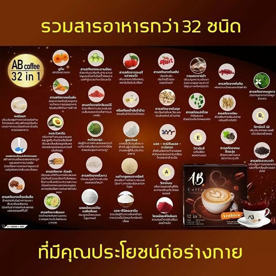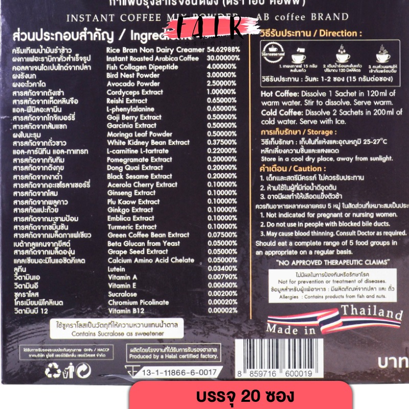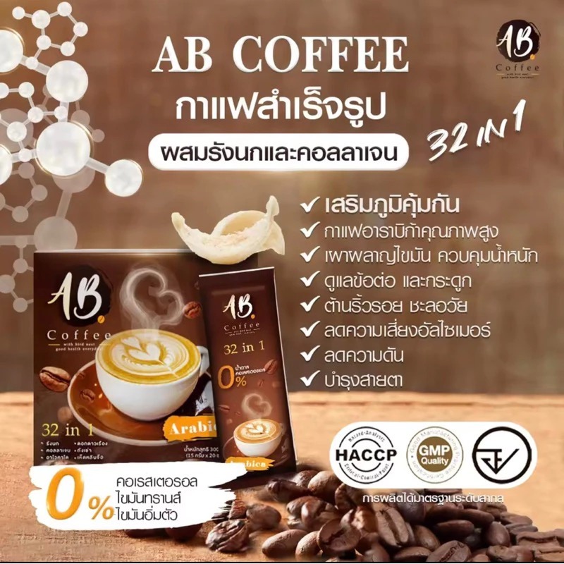 [2 กล่อง] AB Coffee เอบี คอฟฟี่ [20 ซอง] กาแฟสำเร็จรูป 32in1 กาแฟผสมรังนก กาแฟผสมคอลลาเจน