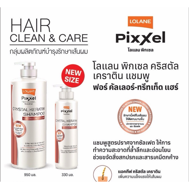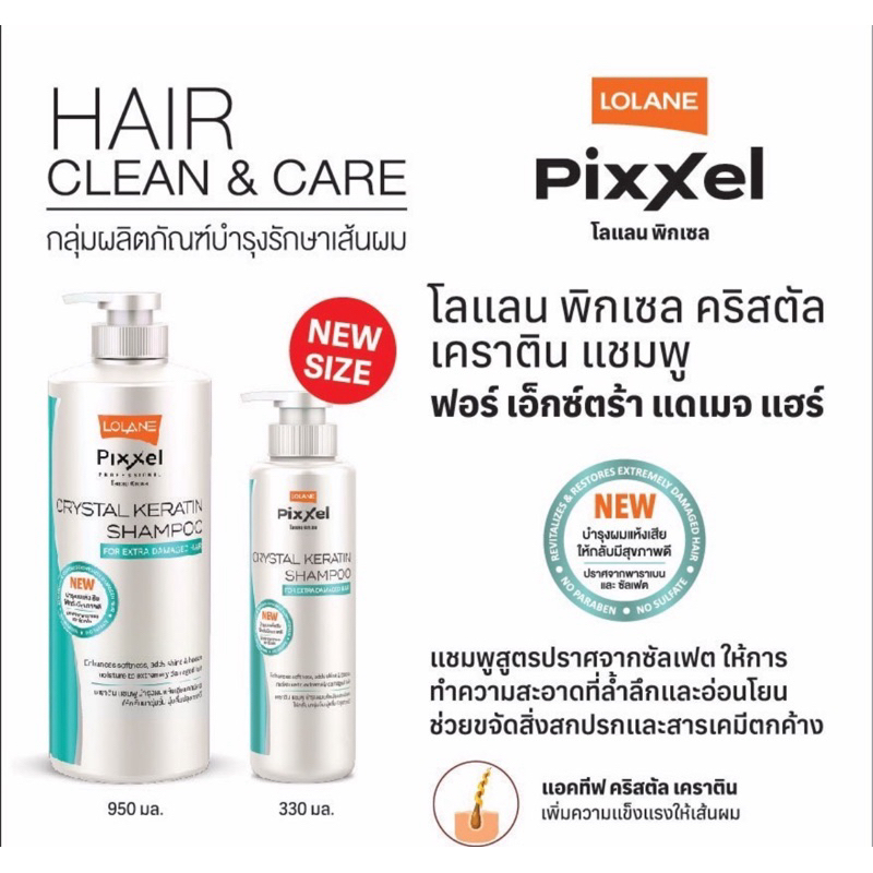Lolane Pixxel Crystal keratin shampoo โลแลน พิกเซล คริสตัล เคราติน แชมพู สูตรบำรุง 2 ขนาด