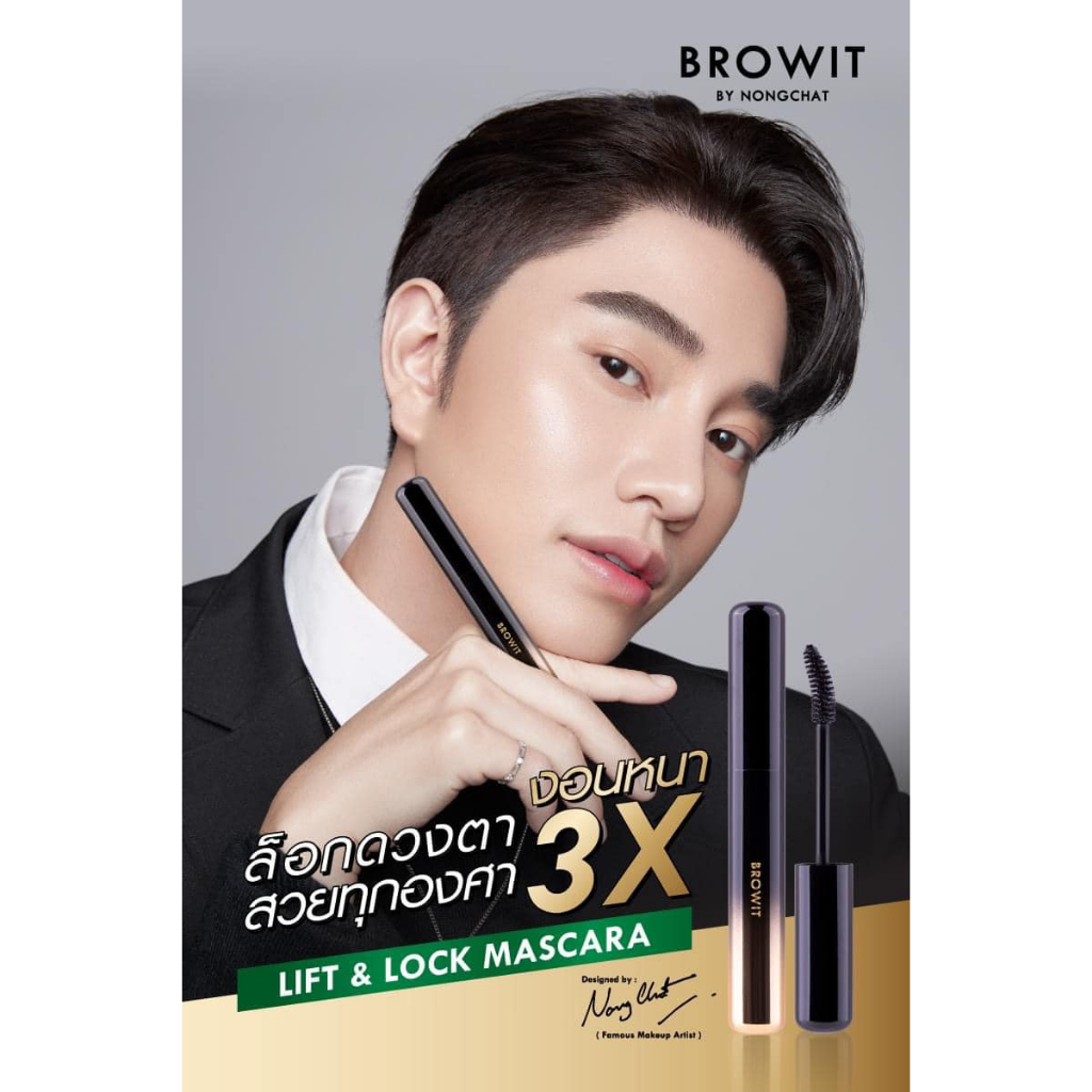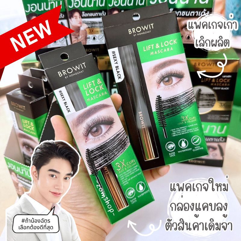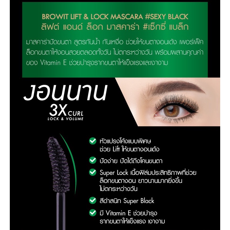 【น้องฉัตร】สีเขียว มาสคาร่าปัดขนตา【ลิฟต์แอนด์ล็อก】กันน้ำ ล็อกขนตา BROWIT LIFT & LOCK MASCARA 6G
