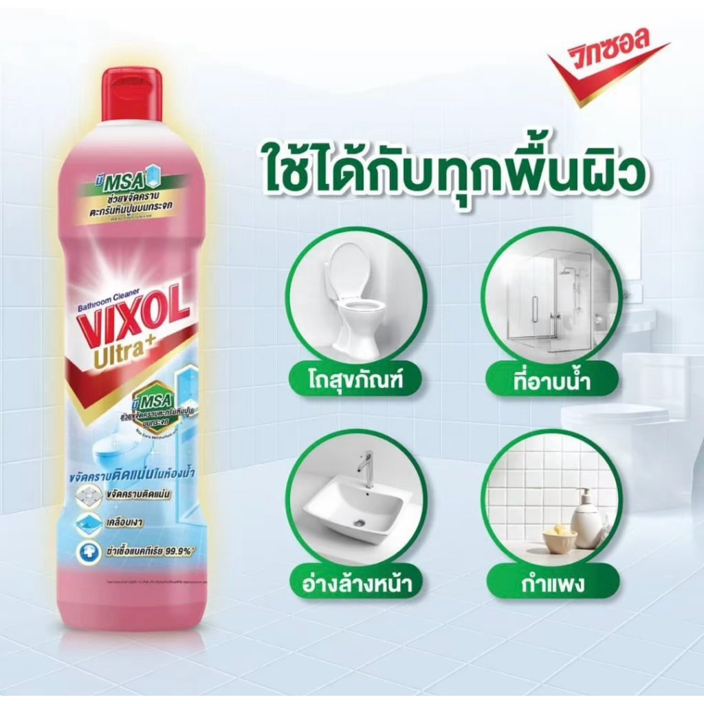 Vixol วิกซอล ผลิตภัณฑ์ทำความสะอาดห้องน้ำและสุขภัณฑ์ สูตรพลังออกซิเจน ขนาด 800-900 มล.แพค1ขวด
