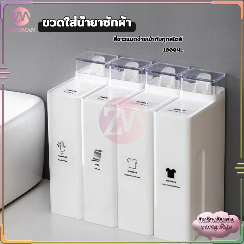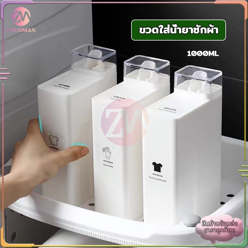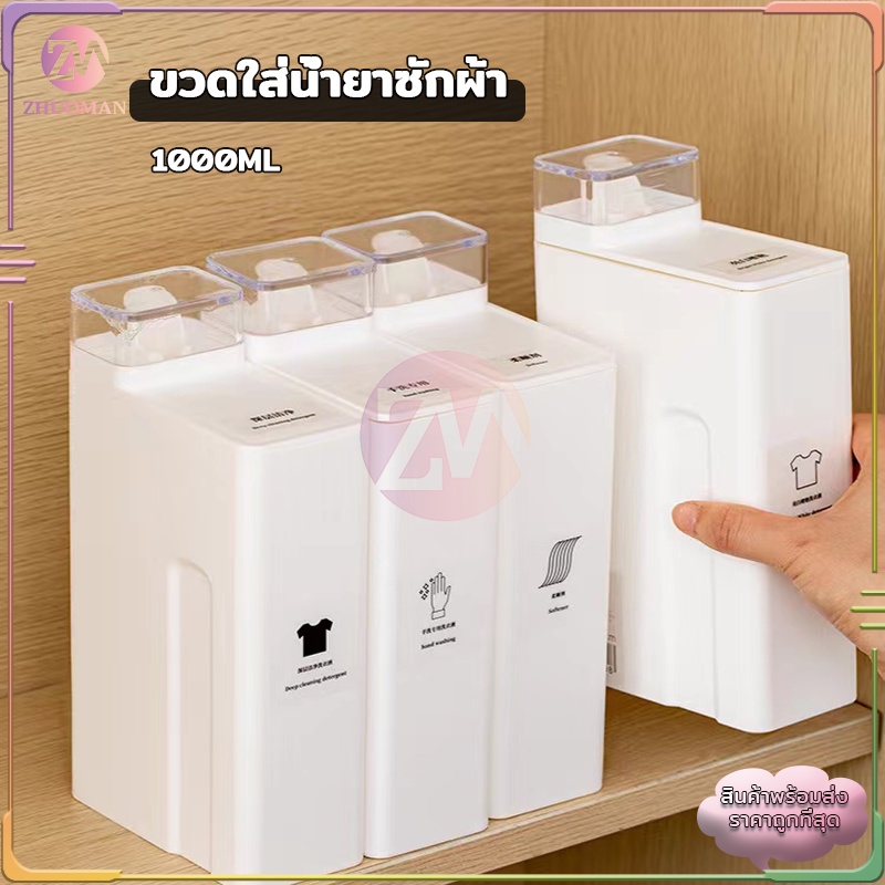 ขวดใส่น้ำยาซักผ้า รีฟิล 1000ML แถมฟรี สติ๊กเกอร์แยกประเภท ฝ าใช้เป็นถ้วยตวงปริมาณต่อการใช้งาน 1 ครั้งได้