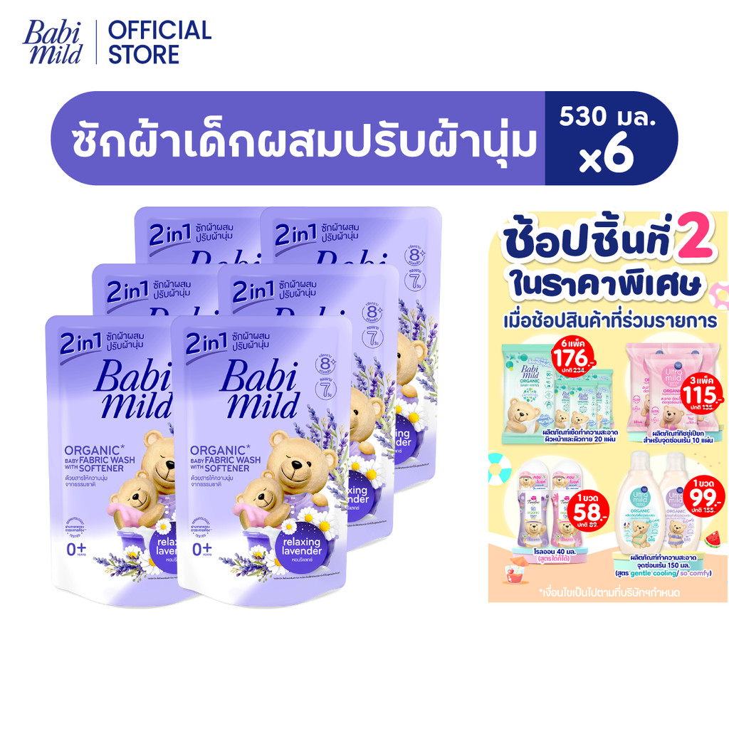 [ยกลัง] เบบี้มายด์ น้ำยาซักผ้าเด็ก 2อิน1 รีแลกซ์ซิ่ง ลาเวนเดอร์ 530มล x6/Babi Mild 2in1 Fabric Wash Lavender
