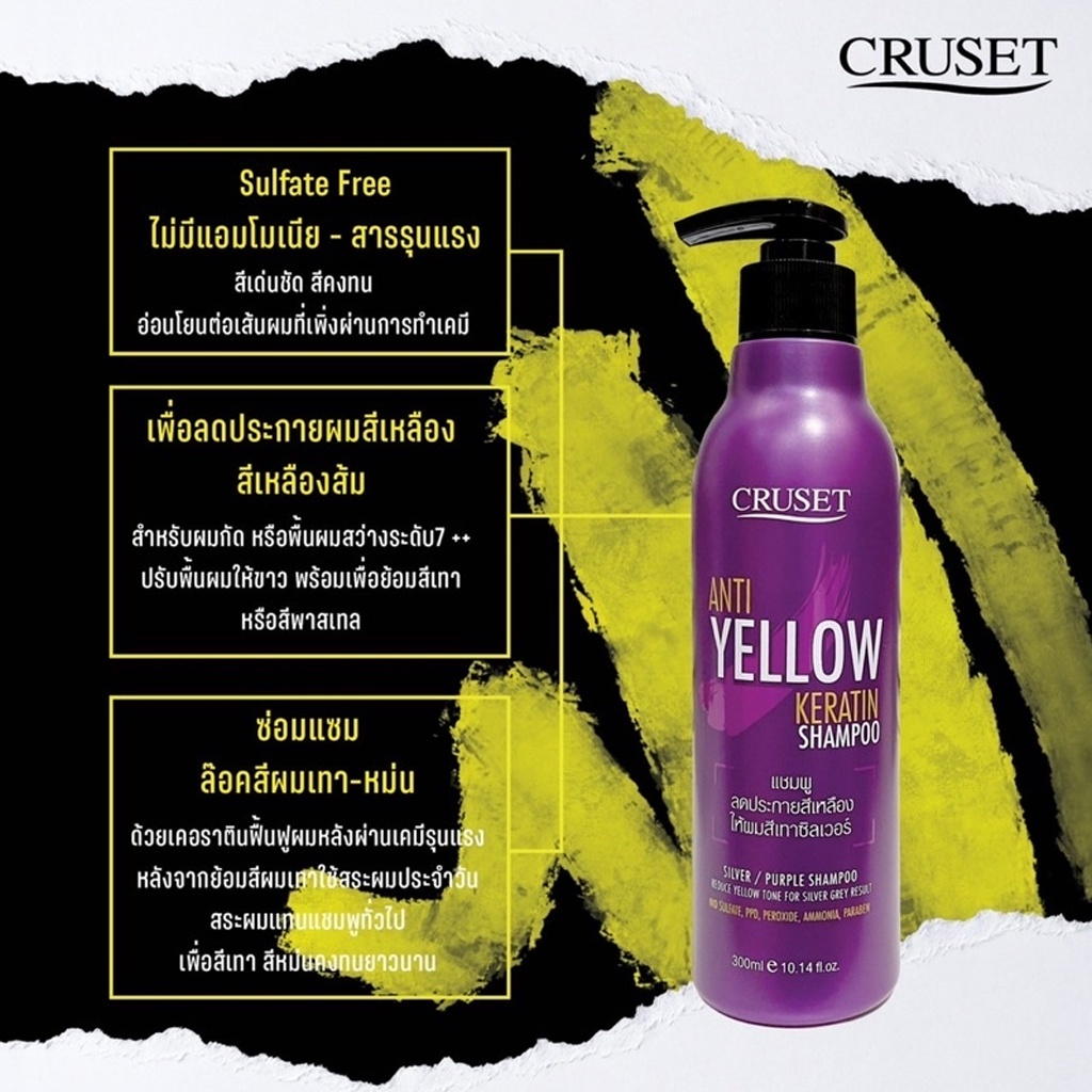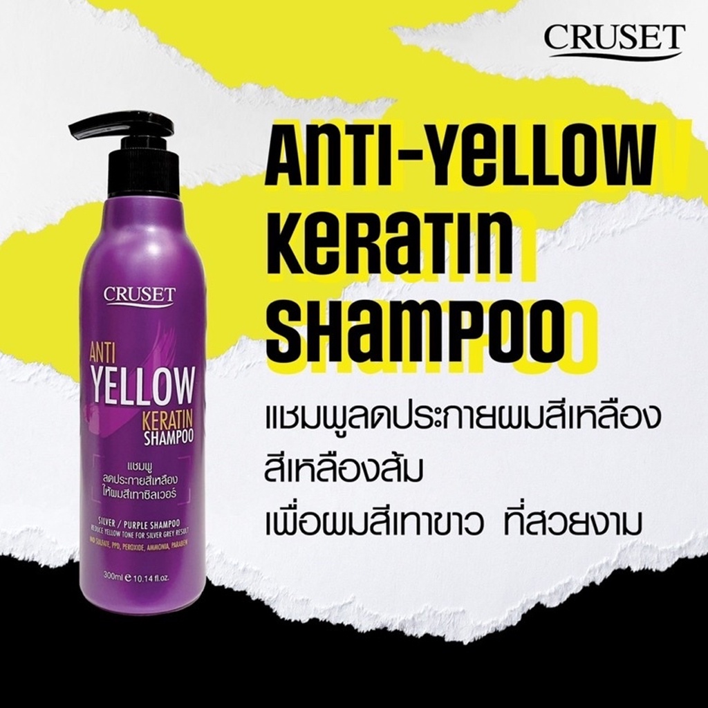 แชมพูม่วง ครูเซ็ท แอนตี้-เยลโล่ เคอราติน แชมพูลดไรเหลือง 300 มล. CRUSET ANTI YELLOW KERATIN SHAMPOO 300ml.