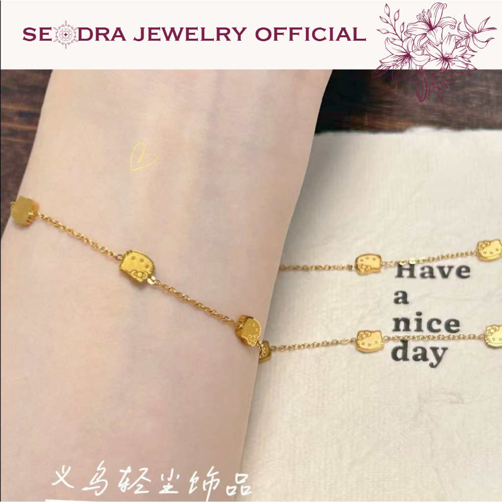 เซโอดรา • สร้อยข้อมือคิตตี้ สวัสดี คิตตี้ สร้อยข้อมือชุบทอง18เค•น่ารักสวัสดี คิตตี้สร้อยข้อมือแบบพลิกกลับได้•น่ารักสร้อยข้อมือสแตนเลสไทเทป