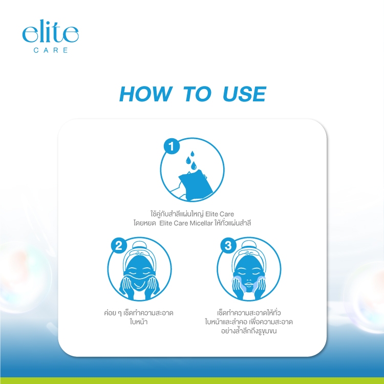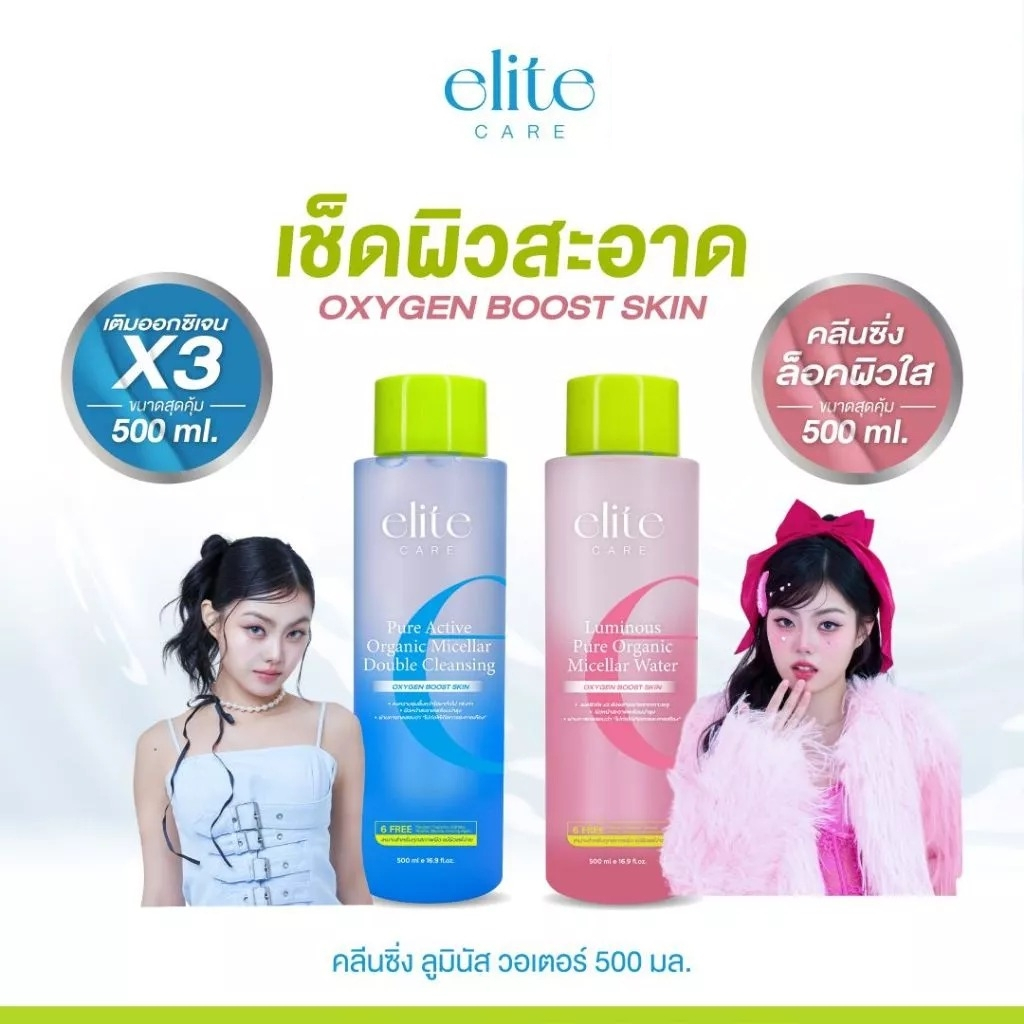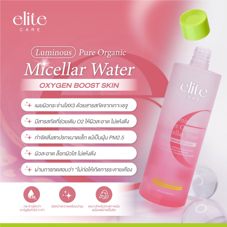 ถูก/แท้/มีไลฟ์ เช็ดเครื่องสำอาง Elite Care Pure Active Double&Luminous Micellar Cleansing อีลีท แคร์ คลีนซิ่ง ไมเซล่า