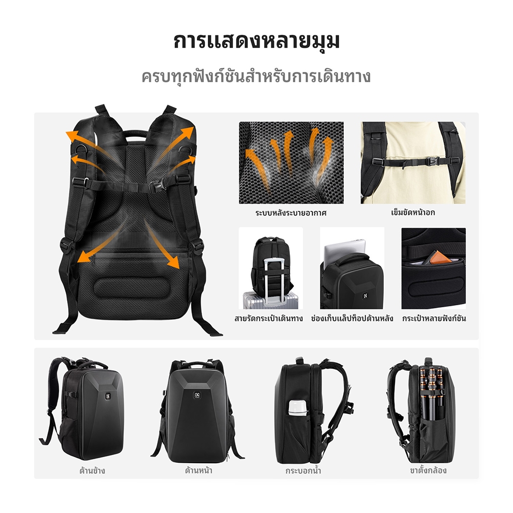 K&F CONCEPT กระเป๋ากล้อง Hard Shell Camera Backpack Waterproof 22L สำหรับกล้อง2ตัว+เลนส์หลายตัว