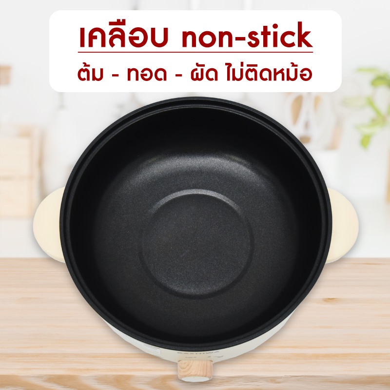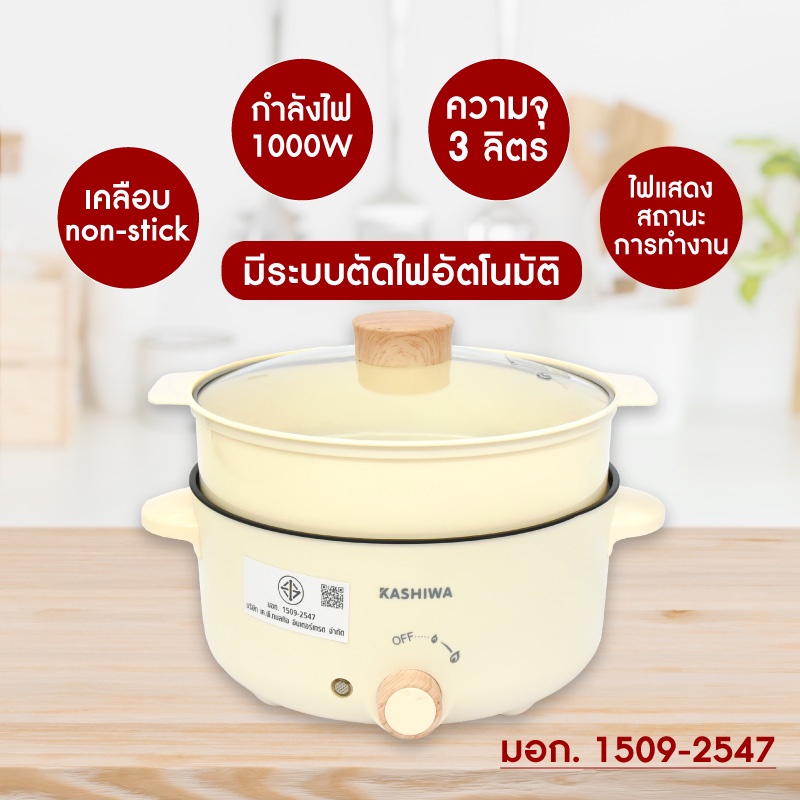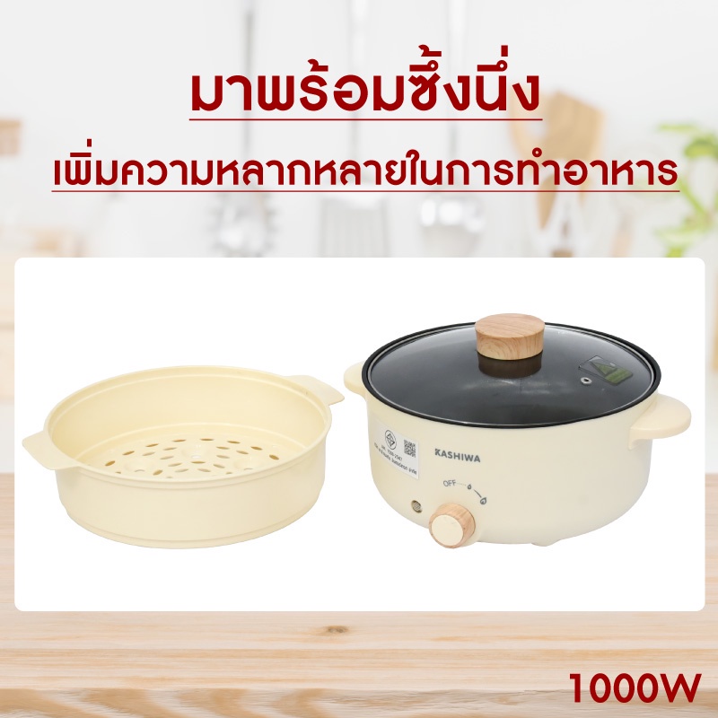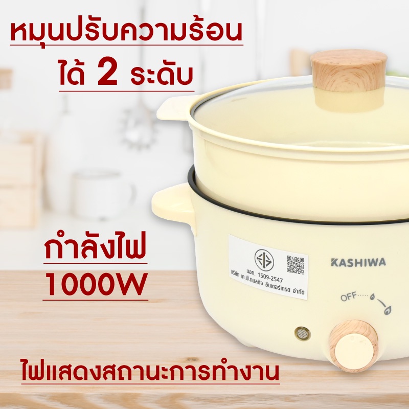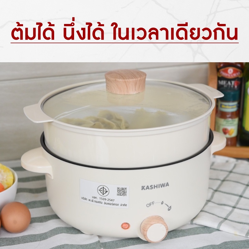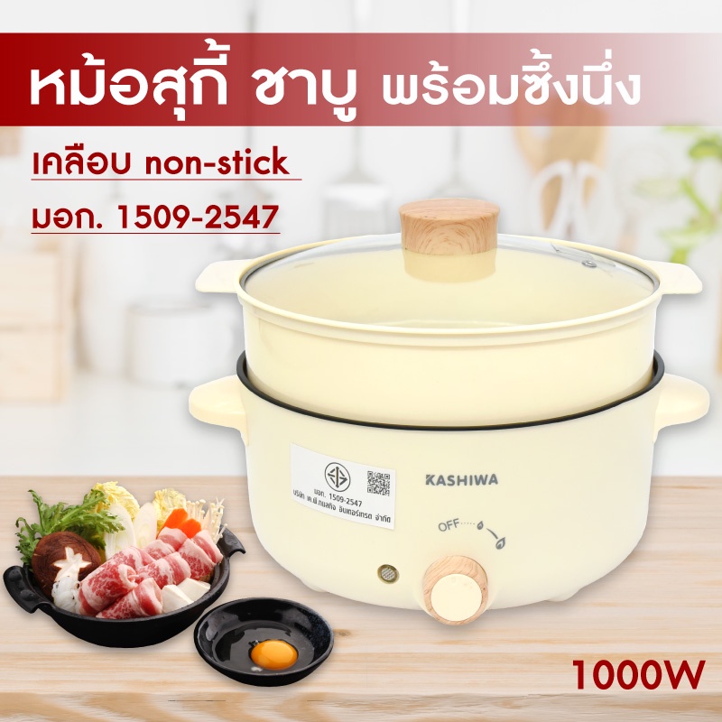 KASHIWA หม้อสุกี้ ชาบู พร้อมซึ้งนึ่ง รุ่น KW-354 ความจุ 3 ลิตร หม้อเคลือบ ฝาแก้ว ซึ้งนึ่ง กำลังไฟ 1000 วัตต์