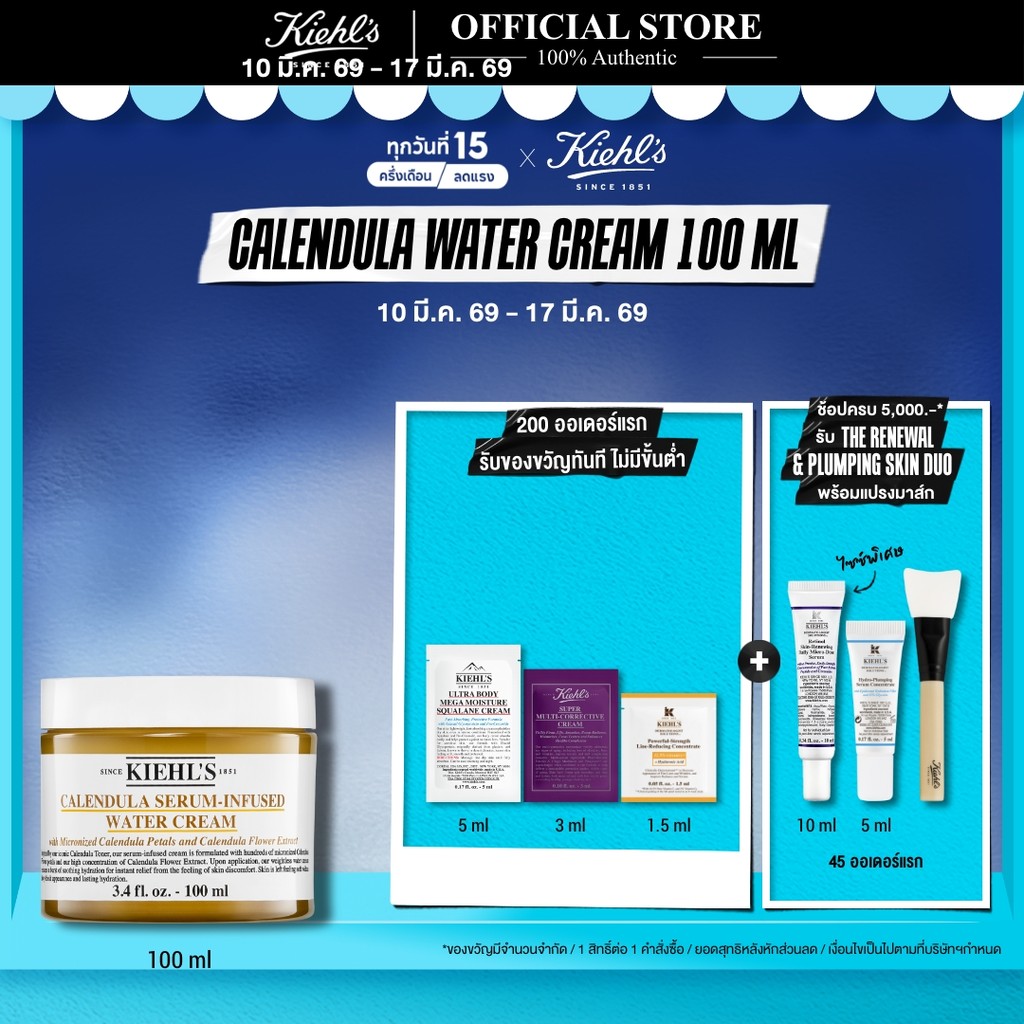 KIEHL'S CALENDULA SERUM-INFUSED WATER CREAM 100ML มอยส์เจอร์ไรเซอร์ ครีม เนื้อบางเบา บำรุงผิวหน้า ปลอบประโลมผิว