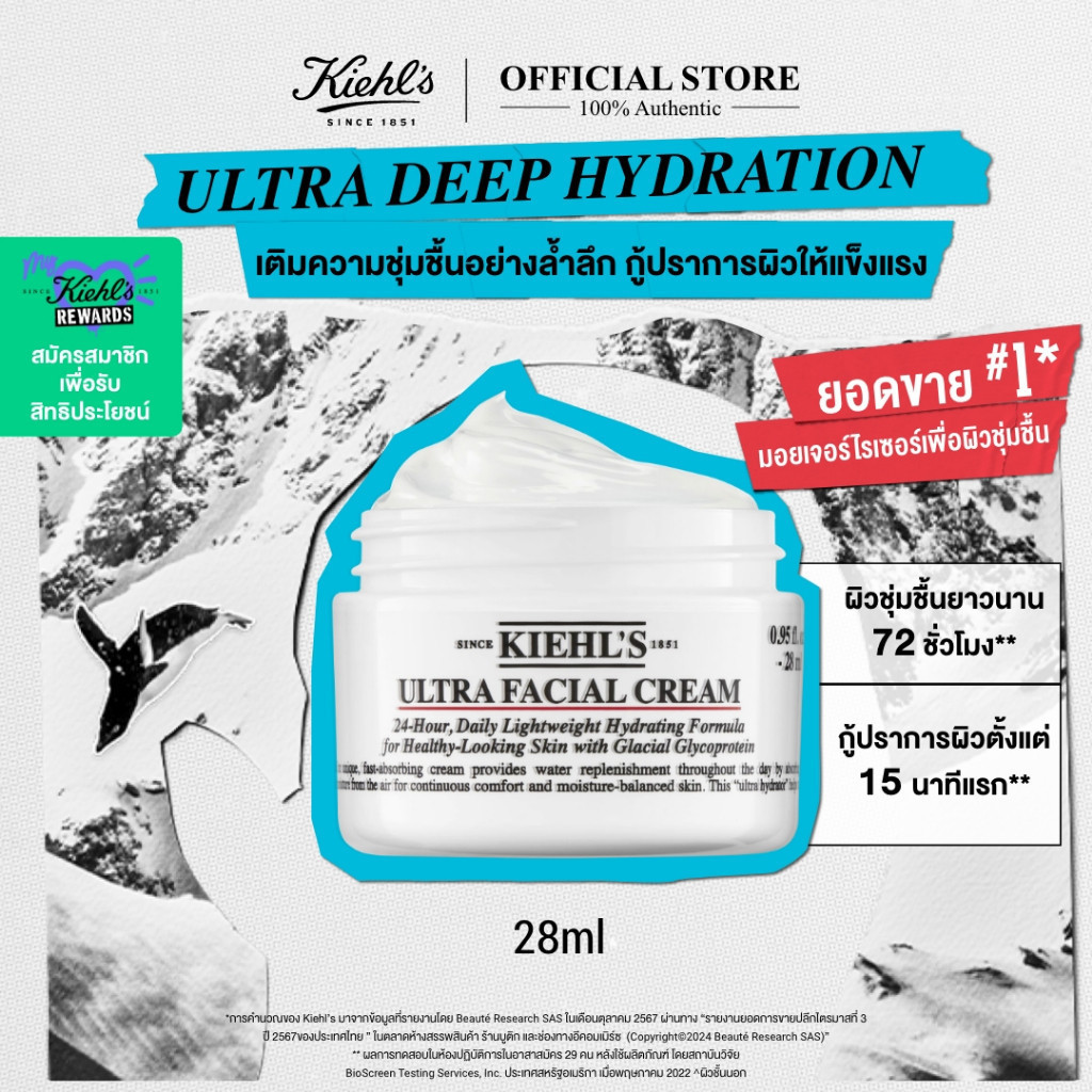 KIEHL'S ULTRA FACIAL CREAM 28ML มอยส์เจอร์ไรเซอร์ ครีม บำรุงผิวหน้า เสริมความชุ่มชื้นให้ผิวตลอด 24 ชั่วโมง
