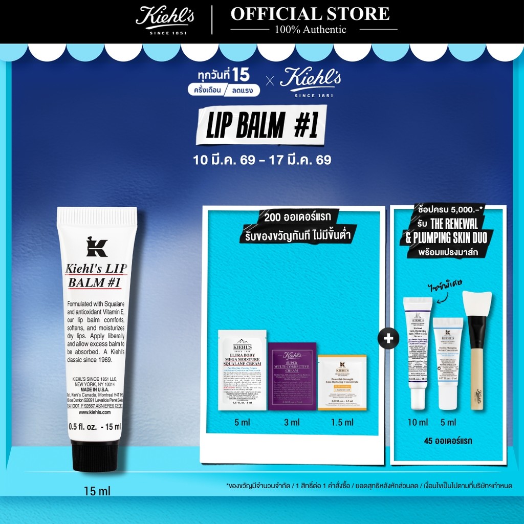 KIEHL’S LIP BALM #1 15ML คีลส์ ลิปบาล์ม ผลิตภัณฑ์บำรุงริมฝีปาก ให้ความชุ่มชื้น ปกป้องริมฝีปาก