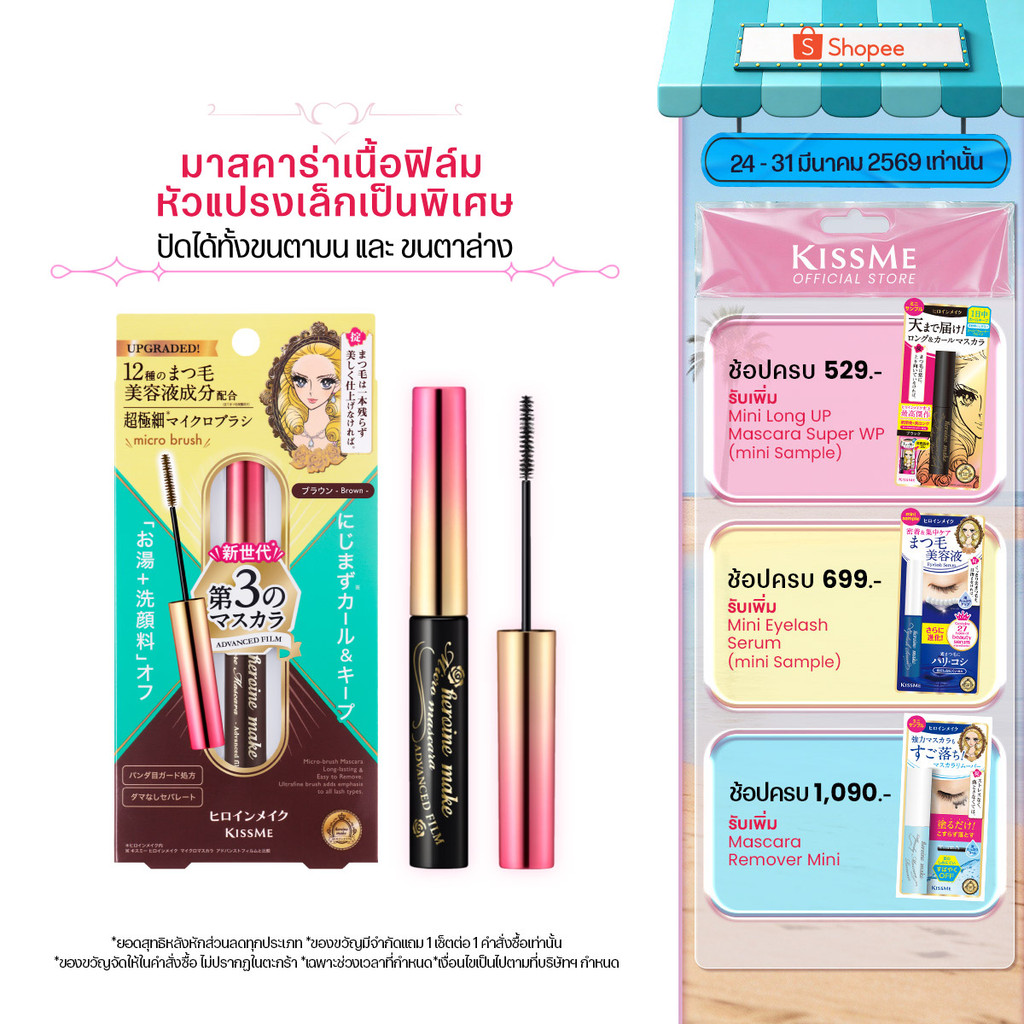 คิสมี มาสคาร่าเนื้อฟิล์ม อีเอ็กซ์ หัวแปรงไมโครเรียวเล็กบางละเอียด KISS ME Heroine Make Micro Mascara Advanced Film EX
