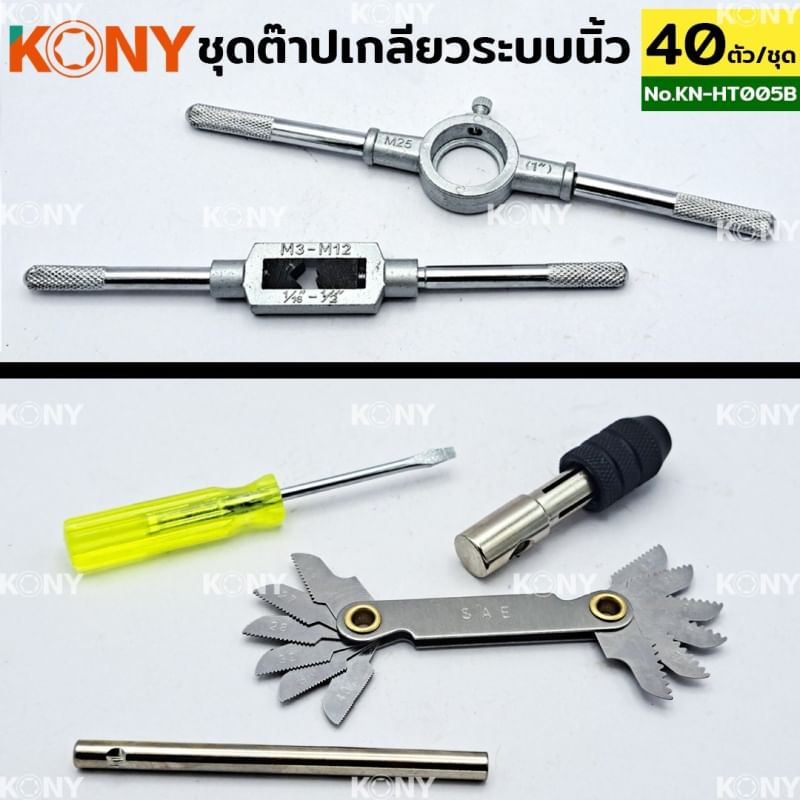 KONY ชุดต๊าปเกลียว ต๊าปเกลียว ระบบนิ้ว 40 ตัว/ชุด KN-HT005B ต๊าปชุดเอนกประสงค์ ต๊าป ชุดทำเกลียว ดอกต๊าฟเกลียว